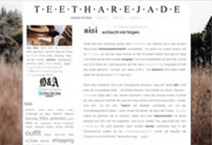 Im Juli 2008 gründete wir den Blog teetharejade. Und da wir immer wieder danach gefragt werden: Nein, der Name hat weder eine Bedeutung noch einen Sinn. Wir wollten quasi ein eigenes Wort, einen eigenen Namen schaffen, indem wir einfach verschiedene Wörter zusammengewürfelt haben.