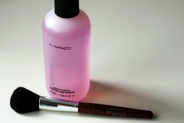 Dazu benutze ich einen Rougepinsel von Beliance (toll sind ja die „Stinktier“pinsel von MAC; aber mit 41€ mir echt zu teuer xD) und zum reinigen den Brush Cleanser von MAC.
