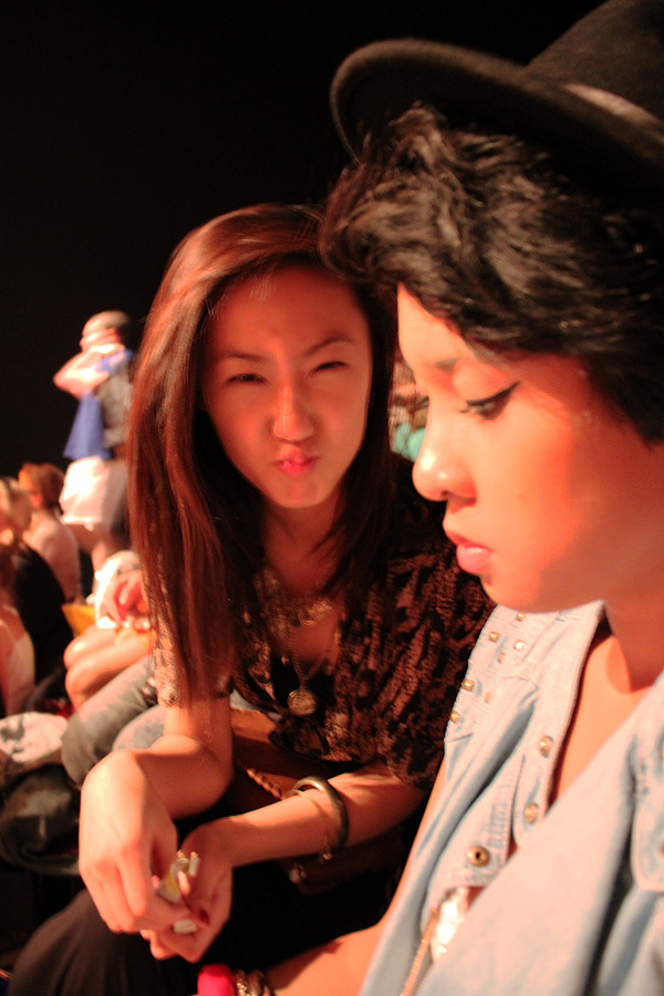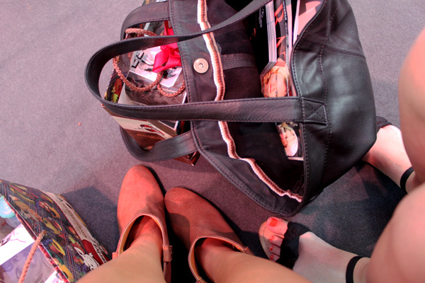(1) Im klimatisierten!!! Zelt auf die nächste Show warten. (2) Schwere Goodiebags und vollbepackte Taschen. (3) Armbänder von designo. (4) Van Anh von Chopstick Panorama. (5) Lois von L is for Lois. (6) & (7) Mein Outfit.