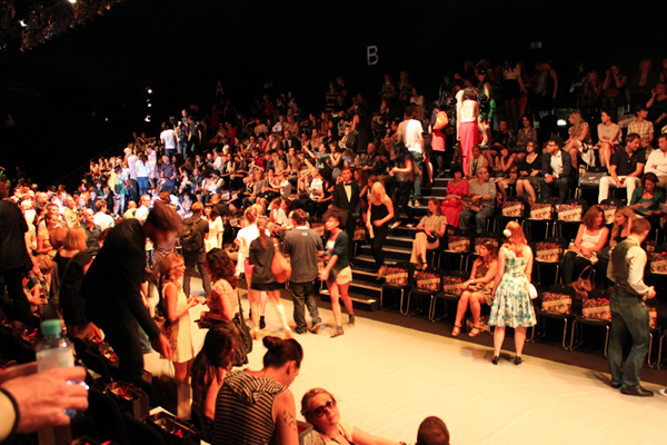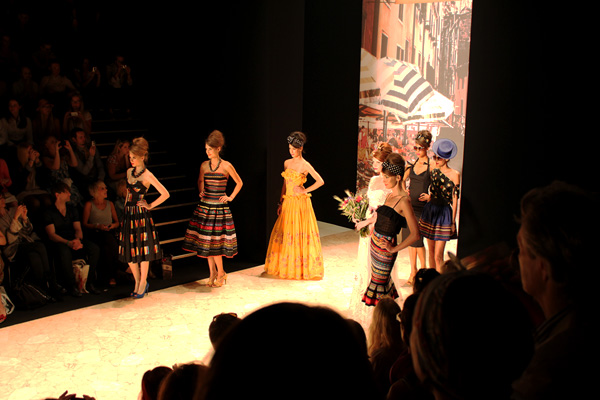 Nisi und ich sind diese Saison wieder auf der Berlin Fashionweek mit dabei. Es ist immer wieder schön bekannte (Blogger-)Gesichter wieder zu sehen, wie z.b. die Mai von maishion :) Meine erste Show heute war die von Lena Hoschek. „Italienische Folklore und südländischer Charme“ eine passende Beschreibung ihrer neuen Kollektion. Trotz bunten Stickereien, farbenfrohen Mustern, ein paar Rüschen und Volants bleibt sie ihren 50er-Jahre-Stil treu – Ein wahrer Augenschmaus. Ebenfalls gefallen hat mir die südländische Musik, die süßen kleinen Mädchen am Ende der Show und dass das Privileg der Goodiebags nicht nur der ersten Reihe vorbehalten war.