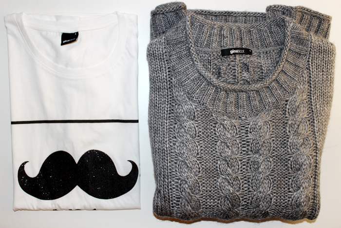 Das ist unsere Gina Tricot Ausbeute. Eigentlich landete noch eine two tone Clutch, ein khaki Parka und ein melierter Pullover in unsere Einkaufstüten, welche wir morgen aber doch wieder zurückgegeben werden. Dafür hätten wir lieber einen extra super langen Cardigan und einen Stars & Stripes Pullover mitnehmen sollen. Naja.