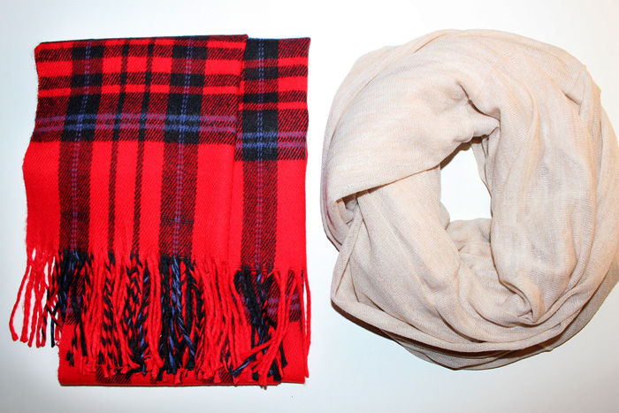 1. orangerner Endlosschal 2. orangene Handetasche 3. Regenschirm (for free) 4. Mustache T-Shirt 5. (oversized) Zopfstrick-Pullover 6. Schal im Tartanmuster 7. champagnerfarbener Endlosschal 8. cremefarbener Basic Longsleever 9. hellblau gestreiftes Hemd 10./11./12. Spitzenunterwäsche 13. Äpfelchenkette 14. und 15. Skinnyjeans mit Reißverschlüssen am Knöchel 16. supersoft Jeans in schwarz.