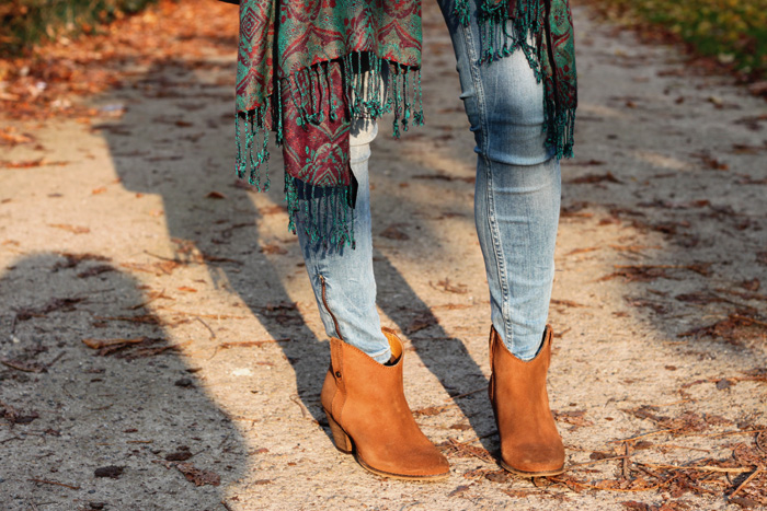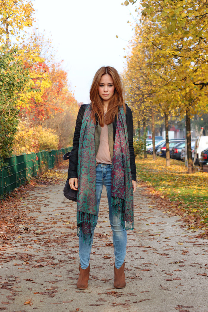 Tolle Herbstkulisse oder? :) Den Schal hatte ich aus dem H&M Sale für 5€ erstanden und der Lippenstift, den ich drauf habe, ist von Topshop in der Farbe „Desert“. Ein schönes peachiges nude – mag ich sehr!