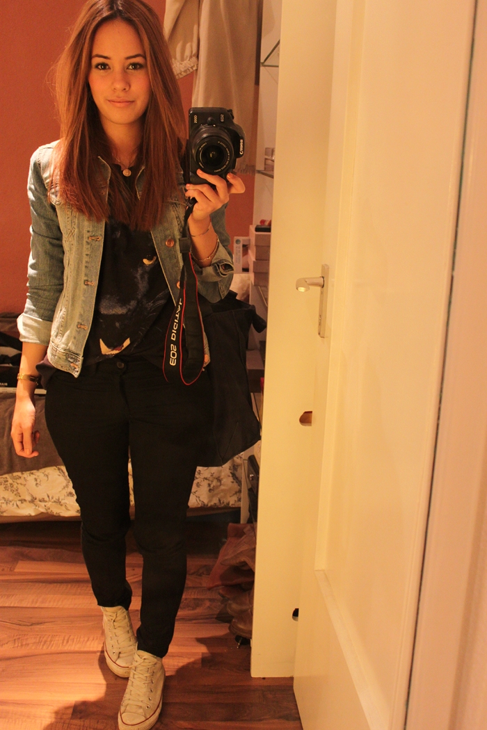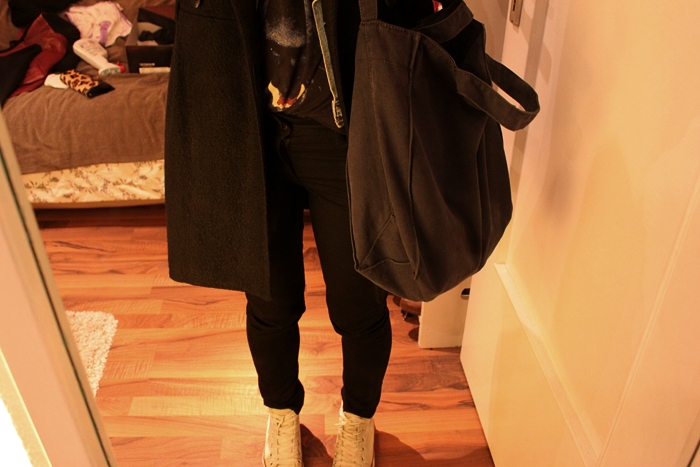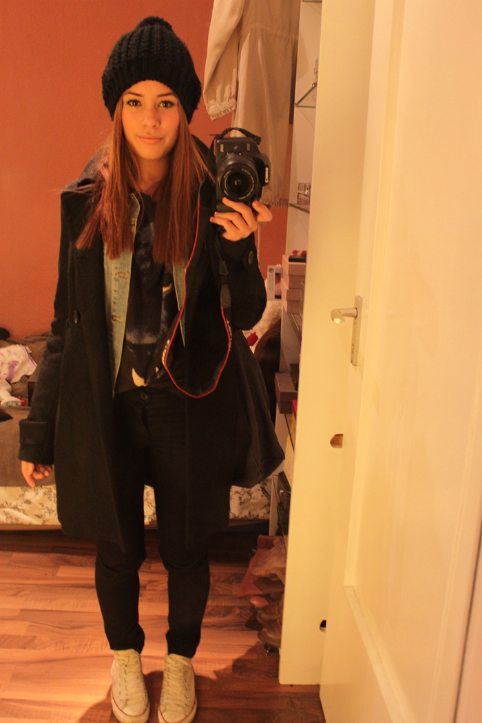 Mein Uni-Outfit vom Mittwoch. Das Panther Shirt hab ich mir von Nisi gemoppst, den Nagellack von einer Freundin, haha (von Flormar in M 108) – der ist übrigens echt toll und hält ziemlich lange! Die Bommelmütze hat mir auch meinen Tag gerettet, denn es war schweinekalt!