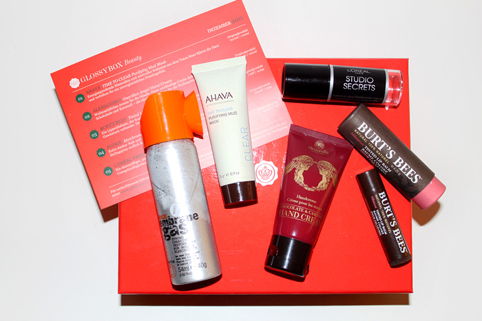(1) Ahava/ Time To Clear Purifying Mud Mask (2) Alessandro/ Guardian Angel Hand Cream (3) Burt’s Bees/ Tinted Lip Balm (4) Fudge/ Membrane Gas (5) L’Oréal Paris Studio Secrets Professional Make-up Stick