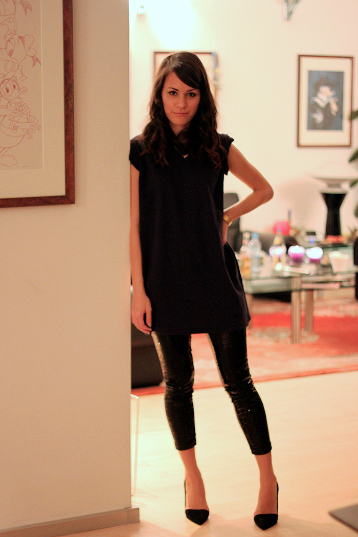 Mein Outfit fiel sehr gechillt, jedoch angemessen aus. Die glitzernde Pailletten-Leggins sorgte dann aber noch für den Silvester-Glamour :D :D :D Übrigens gabs die Wishlist-Casio-Uhr vom Freund zu Weihnachten – juhu!!! ♥