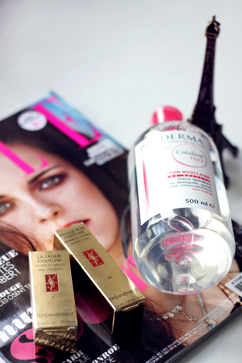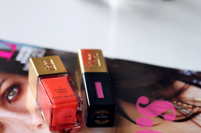Zu guter Letzt bleibt dann doch noch etwas an dekorativer Kosmetik. Eines der neuen Nagellacke Le Laque Couture von YSL in der Farbe Coral Divin und Vernis à Lèvres in der Farbe 16. Natürlich noch ein kleines Souvenir, der Eiffelturm in Miniformat, und die französische ELLE.