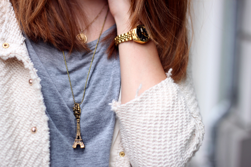 Es ist schon so lange her, dass ich diese Eiffelturm-Kette in der Goodie Bag vom Maison Scotch Shop Opening bekommen habe und ich habe sie noch nie getragen. Doch nun, da wir selbst mal in Paris waren, macht es viel mehr Sinn, sie auszuführen ;) Dieses Outfit hatte ich zur Uni an, wofür diese 7cm Pumps (klingt jetzt sogar höher als sie sind!) von H&M ganz praktisch sind. Tragt ihr hohe Schuhe zur Schule oder zur Uni?