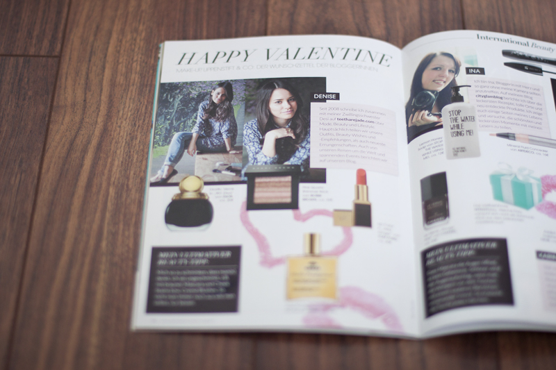 Fazit: Um ehrlich zu sein war dieser Glossybox-Monat war diesmal nicht sehr erfreulich. Kaum ein Produkt erweckt mein Interesse oder spornt mich wirklich zum "Ausprobieren" an. Und das ist das, was ich mir von jeder Box erhoffe. Auch vom Motto "Beauty Compass – Mit der Glossybox um die Beauty-Welt" kann ich nicht viel erkennen. Aber ein kleines Highlight gibt es in dieser Box trotzdem: nämlich mein Feature im Glossy Mag zum Thema "Happy Valentine – Make-Up, Lippenstift & Co: Der Wunschzettel der Bloggerinnen" :)