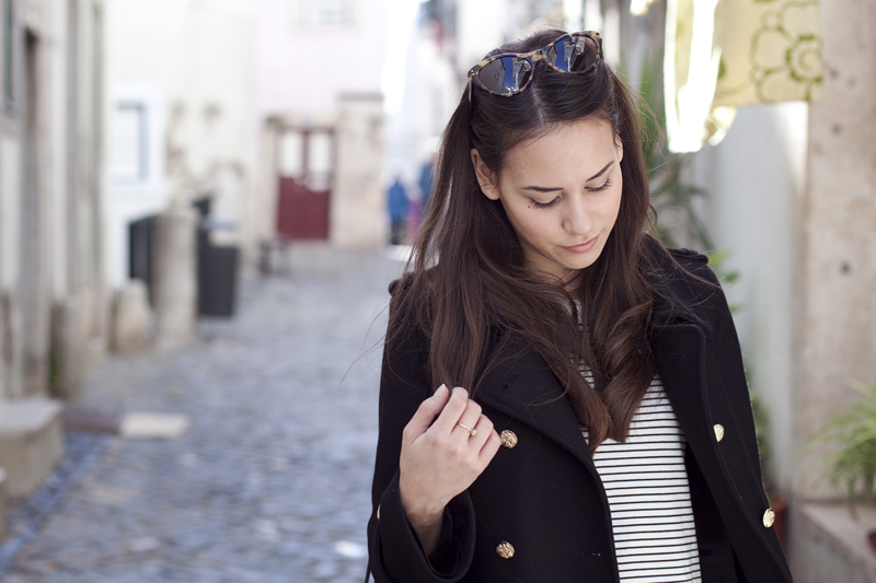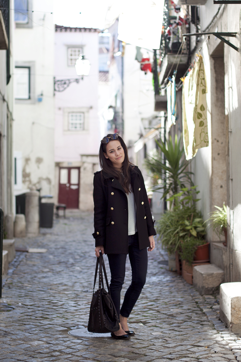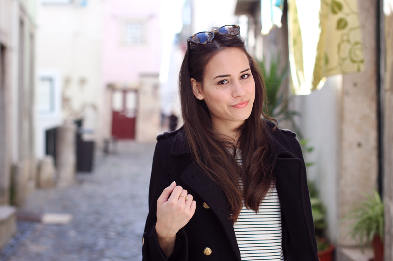 Gosh, seeing those pictures make me miss the warm weather even more. This is an outfit I wore when we were exploring the oldest district of Lisbon – Alfama – with beautiful buildings, lot of alleys and super small front doors :D As you can see I sported the more classical style, again, and also took the chance to finally wear flats. And you all know how I can't get bored of stripes (and studs hehe). I wish to be able to go back in time to be there again or to let the time past very quickly to have summer and my vacation in Lisbon already… . Well, until then I'll wallow in memories and let you be part of it ;)