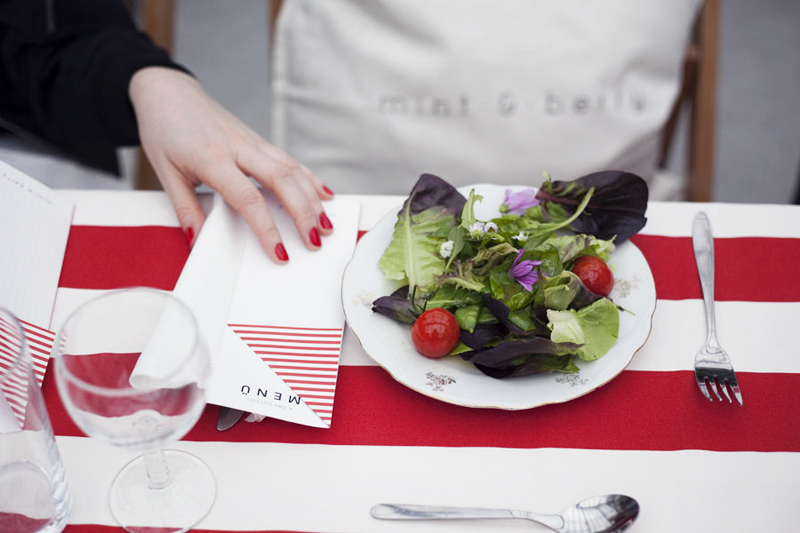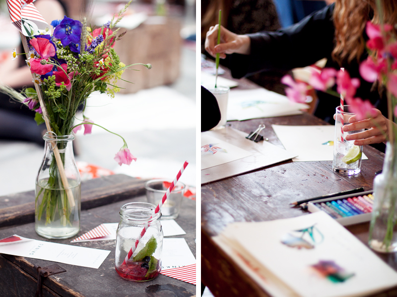 Enttäuscht wurde man keines Wegs. Mit Rikschas wurden alle Gäste vom S-Bahnhof abgeholt und zum Botanischen Volkspark Pankow gefahren. Dort erwartete uns ein Picknick, welches wetterbedingt ins Gewächshaus verlegt wurde. Das war im Endeffekt vielleicht ohnehin eine noch schönere Lösung. Bei Snacks und Drinks konnten wir uns alle erstmal untereinander austauschen. Dann ging es zum Aquarell-Workshop mit Monja Grentschow. Ich glaube, wir alle fühlten uns wie in die Schulzeit zurückversetzt und hatten eine Menge Spaß! Außerdem wurden ein paar Rasenspiele – Kegeln, Ringe-Werfen und Crocket – für uns vorbereitet. Ganz nostalgisch ging es ebenfalls im Atelier von Mint&Berry zu. Hier stellte uns Lead-Designerin Caroline von Stieglitz die Herbst/Winter-Kollektion vor. Typisch für Mint & Berry ist der Mix aus modernen Schnitten und Vintage-Elementen. Nächste Saison erwarten uns daher u.a. ein Zusammenspiel von Rock’n Romance, außerdem werden erstmalig Accessoires Teil der Kollektion sein. Zurück im Gewächshaus konnte man dann bei einem netten Dinner den Abend ausklingen lassen. Vielen Dank an dieser Stelle an Lisa und Kerstin für diese gelungene Veranstaltung! ♥