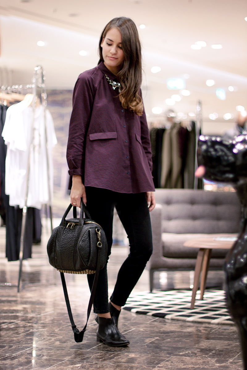 Mein Outfit bestand aus einer Kombination aus Pullover (große Liebe!) und Rock – beide von Sandro – und der Va Va Voom-Tasche von Valentino. Meine Chelsea-Boots von Melvin & Hamilton behielt ich gleich an, da sie meiner Meinung nach wunderbar zum Outfit gepasst haben.