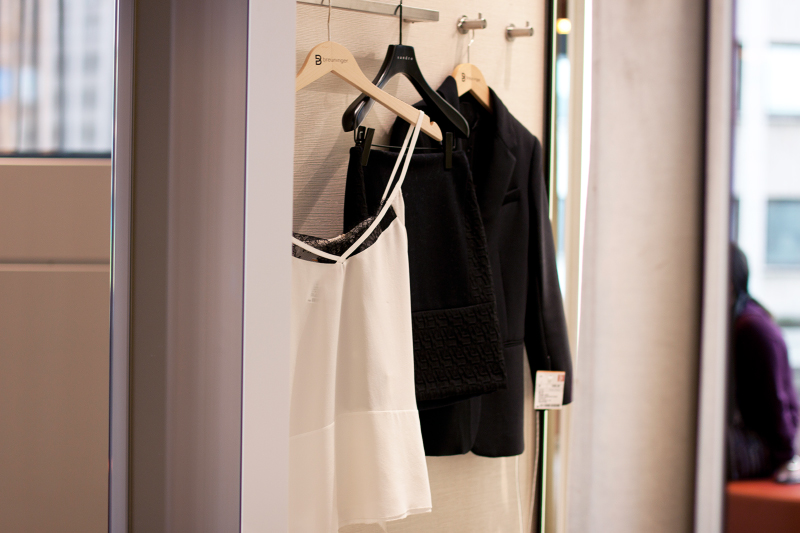Vergangene Woche hat es mich das erste Mal nach NRW verschlagen, genauer gesagt nach Düsseldorf, um mit sieben anderen Blogger den neuen Flagshipstore von Breuninger zu erkunden. Neben einer kleinen Hausführung durch das 15.000m² große Modehaus wurde für uns noch ein tolles Programm vorbereitet. Kristina Bazan und James Chardon von kayture.com haben mit uns in „The Lesson“ ihre Erfahrung zum Thema Bloggen und alles was dazu gehört geteilt. Ich muss zugeben, Kristina ist hautnah eine wahrhafte Erscheinung! Doch auch wir waren gefordert und hatten in der Styling-Challenge die Aufgabe, uns in kurzer Zeit ein Outfit mit dem Motto „Black & White“ zusammenzustellen. Da waren wir also, die Modeblogger, und flitzten durch’s ganze Breuninger-Haus. Die riesige Schuhabteilung habe ich direkt übersprungen, bei der Auswahl von insgesamt 25.000 Paar Schuhen wäre ich sicherlich durchgedreht. Am Ende hatte jeder sein Outfit zusammen, die Ergebnisse konnten sich echt sehen lassen. Interessant war zu beobachten, welche Lieblingsmarken sich bei uns herauskristallisiert haben: 3 Paar Schuhe von Céline, 3 Valentino-Taschen und kaum einer konnte widerstehen, etwas von Sandro abzugreifen – doch zum Glück hat sich niemand um ein Teil gestritten ;)