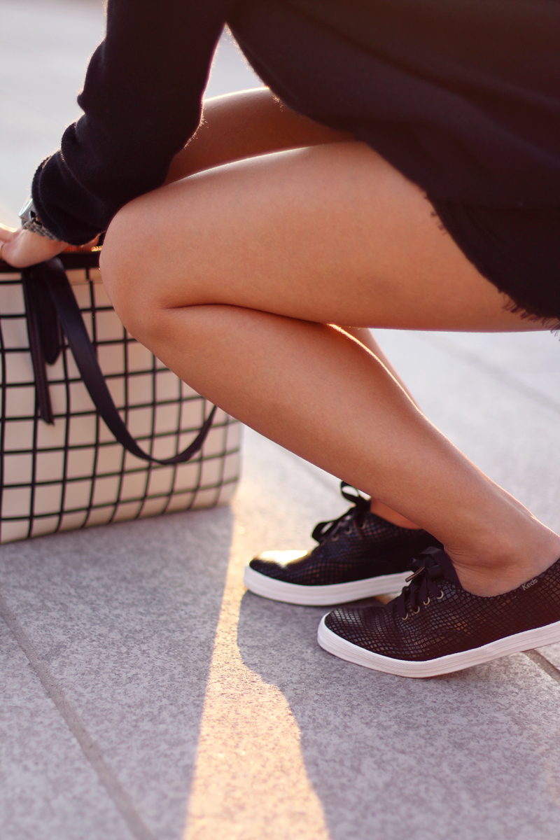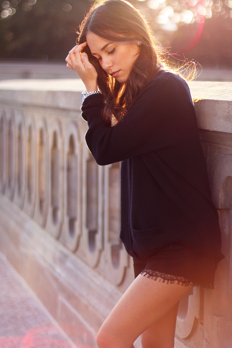 The weather god must have answered my prayers and made the sun come out one last time so that we could enjoy a little ‚indian summer‘ here. So I took the chance and wore some shorts again! I also kinda felt wearing all black and paired my lace shorts to a black cardi and croco plimsolls. Only the shopper is bringing some light in the dark. It’s a perfect outfit to stroll through town. How did you spend the sunny days?