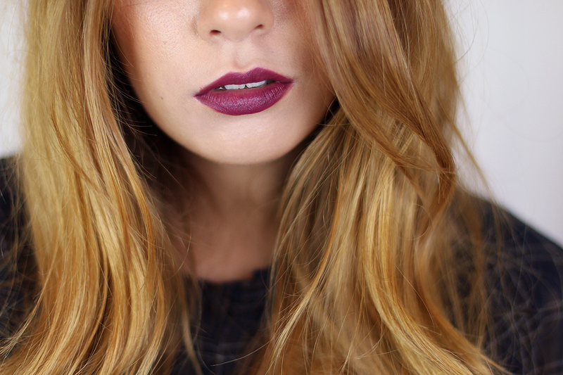 (3) Topshop Lipstick in „Inhibition”. I think this dark purple is a little bit more daring. Anyway, it totally goes with every hair colour: blond, brown and especially red. To this lipstick I would wear a very light and bright makeup so the look is not too heavy: A little bit of bronzer, highlighter, nude eyeshadow and lots of mascara. I couldn’t find „Inhibition” online anymore but „The Damned” is a bit more reddish and a great alternative.