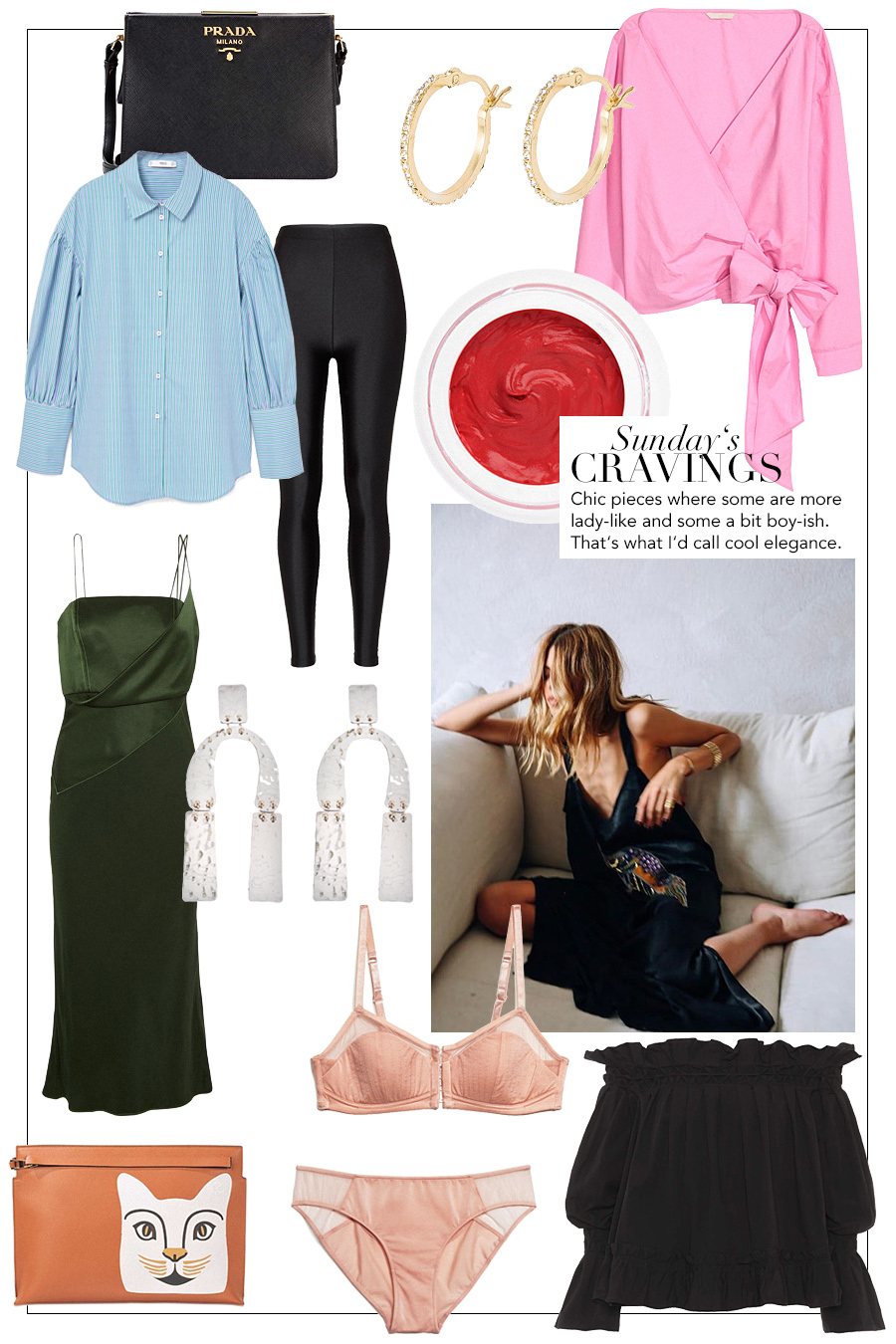 Eleganz muss nicht immer streng und formal sein. Ich denke da an feminine Kleider, die den Körper sanft umschmiegen, glatte glänzende Stoffe, aber auch locker sitzende Klassiker bunte Farben und verspielte Abendtasche sind da nicht ausgeschlossen. Die heutigen Sunday’s Cravings sollen mein Bild von cooler Eleganz. wiederspiegeln.