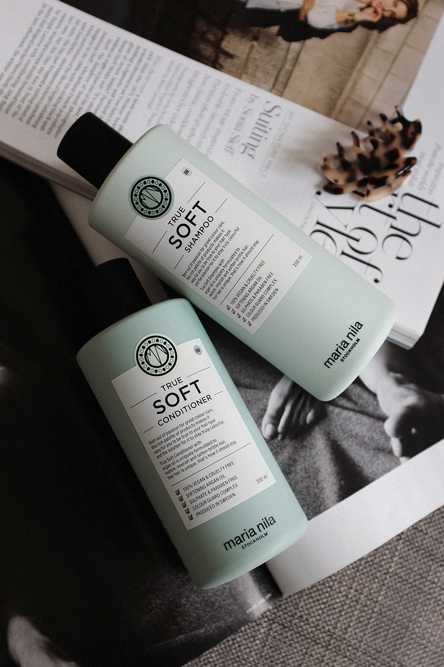 in this photoI use the True Soft range with shampoo, conditioner, mask and the argan oil. It nourishes my colored hair just right – not too intense or heavy.