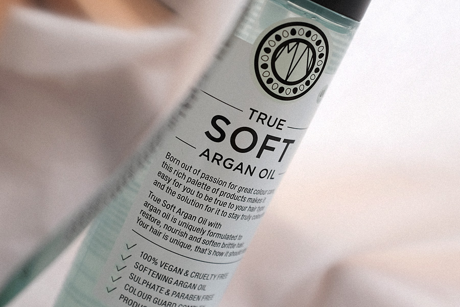 Ich benutze die True Soft Reihe, da ich durch das Aufhellen recht trockenes Haar habe. Ich muss schon sagen, dass es mich ein klein wenig glücklich gemacht hat, als mir bei der Beratung gesagt wurde, dass Structure Repair zu intensiv für meine Haare wäre. Sie sind also beansprucht, aber nicht zerstört – juhu! True Soft ist sanft, und wirkt mit Arganöl stärkend und feuchtigkeitsspendend und kommt in Form eines Shampoos, eines Conditioner, einer Haarmaske und einem Haaröl daher.