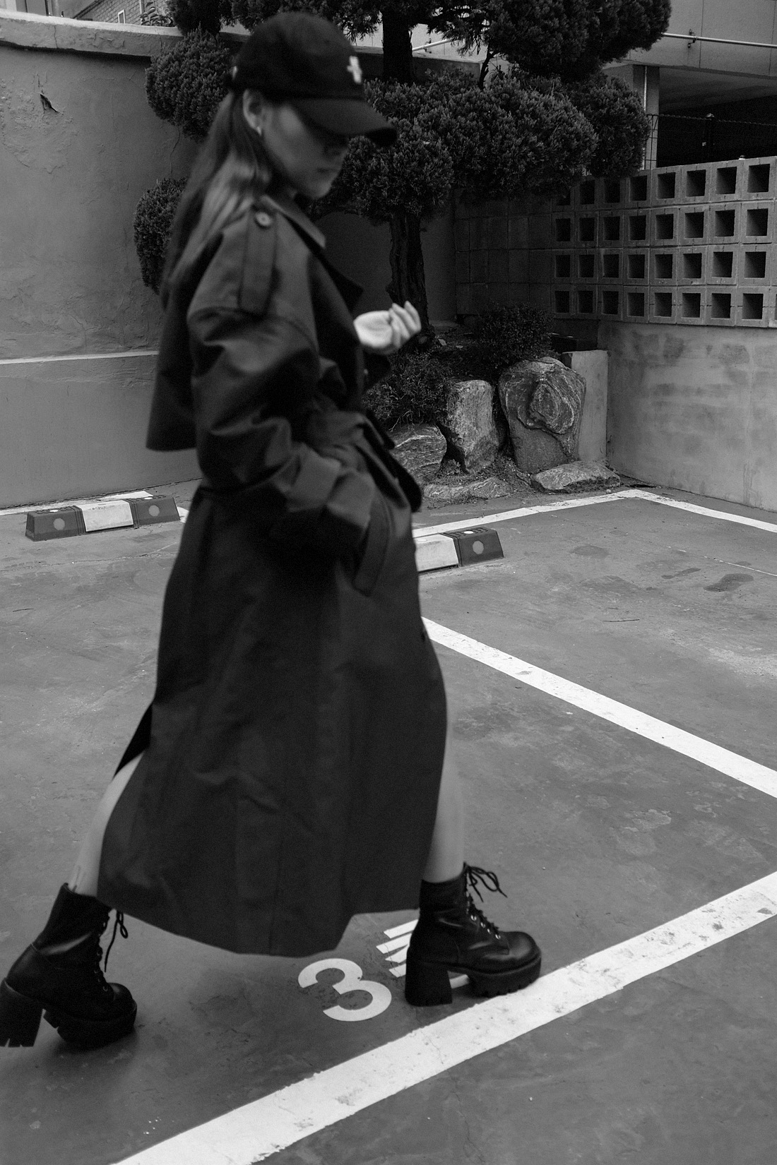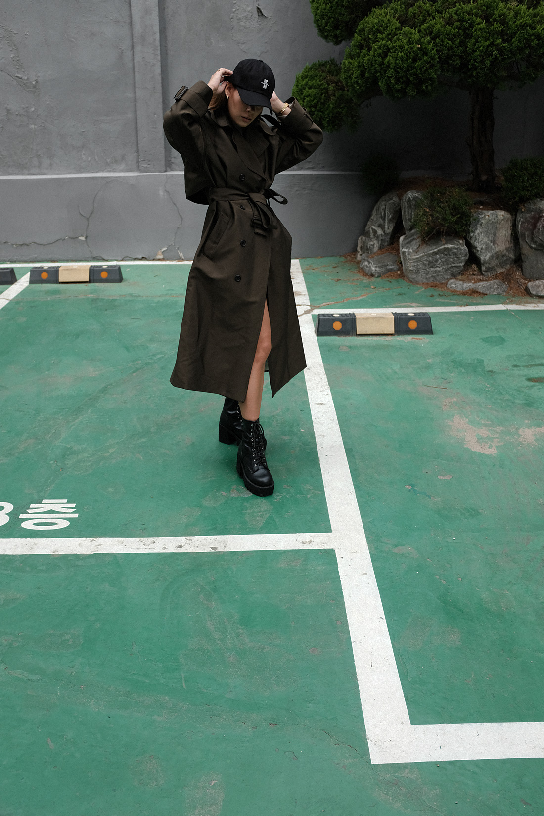 It’s trench coat season! Ich kann wieder eins meiner liebsten Fashion-Pieces, meine allerliebste Übergangsjacke (nebenbei bemerkt die wohl tollste Oberkategorie, die es gibt) aus dem Kleiderschrank hervorholen und es ist der Trenchcoat! Und obwohl ich mir vor unserer Reise nach Seoul gesagt habe „Ich kaufe mir keinen weiteren Trenchcoat“, nachdem ich mir beim letzten Mal gleich 3 gegönnt habe, konnte ich auch dieses Mal einfach nicht widerstehen. Das neue Exemplar hat Drop-Shoulders, ist Wadenlang und aus einem festeren, Neopren-ähnlichem Stoff. Und weil er eigentlich ein Männer-Trenchcoat ist und demnach etwas weiter geschnitten ist, sitzt er extrem oversized, was ich – wie ihr sicherlich wisst – liebe! Auch wenn ich Trenchcoats auch sehr gerne zu einem Parisian Chic Look kombiniere, sprich mit einem weichen Pullover zu Knöchellanger Vintage-Jeans und Mules, so trage ich sie auch gerne zu einem coolen urbanen Streetwear Look mit Hoodie und Sneakers oder wie hier mit Cappy und Combat Boots.