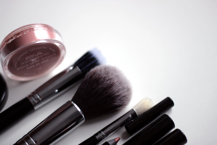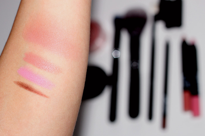 So. Desi suchte sich auch ein paar Pinsel aus. Einmal den großen buschigen Face Blender und den Soft Definer zum Verblenden. Dazu noch zwei Lip Pencil in den Farben „Naked“, ein gesunder Hautton, und „Bonbon“, ein helles Pink. Auf die zwei bin ich ziemlich neidisch. Die Farben sind gut und vorallem trocknen sie die Lippen kein bisschen aus, im Gegenteil. Nur der Geruch ist gewöhnungsbedürftig – riecht total nach Fruchtkaugummi…