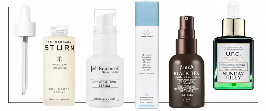 Serums. Ich würde sagen, dass Seren meine liebsten Skincare-Produkte sind. Man kann seine Routine beibehalten, aber durch Seren kann man die Pflege den momentanen Bedürfnissen der Haut anpassen. Ein Produkt, auf das bereits viele schwören ist das Dr. Barbara Sturm Sun Drops SPF 50 Sonnenschutzserum. Es kann mit der täglichen Gesichtspflege vermischt werden oder direkt unverdünnt aufgetragen werden. Die Naturkosmetik-Produkte von Josh Rosebrook wollte ich schon ewig ausprobieren und am meisten interessiert mich das Active Infusion Serum. Es ist wohl das Produkt, um die Haut mit potenten Inhaltsstoffen zu beruhigen, nähren, hydrieren und zu reparieren. Das gleiche Spiel mit Drunk Elephant und dem B-Hydra Intensive Hydration Serum. Meine Augenpflege hat auf jeden Fall Verbesserungsbedarf. Auf das Fresh Black Tea Firming Eye Serum, habe ich schon ein Auge gelegt (see what I did there?). Ein kleiner Splurge wäre das Sunday Riley U.F.O. Ultra-Clarifying Face Oil, die Waffe gegen verstopfte Poren und Unreinheiten.