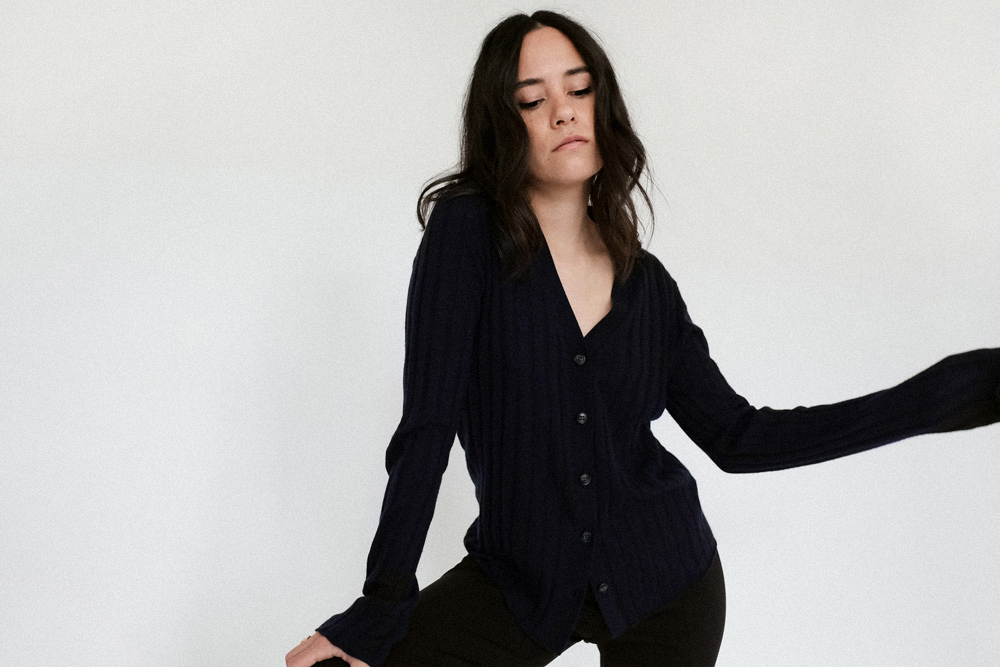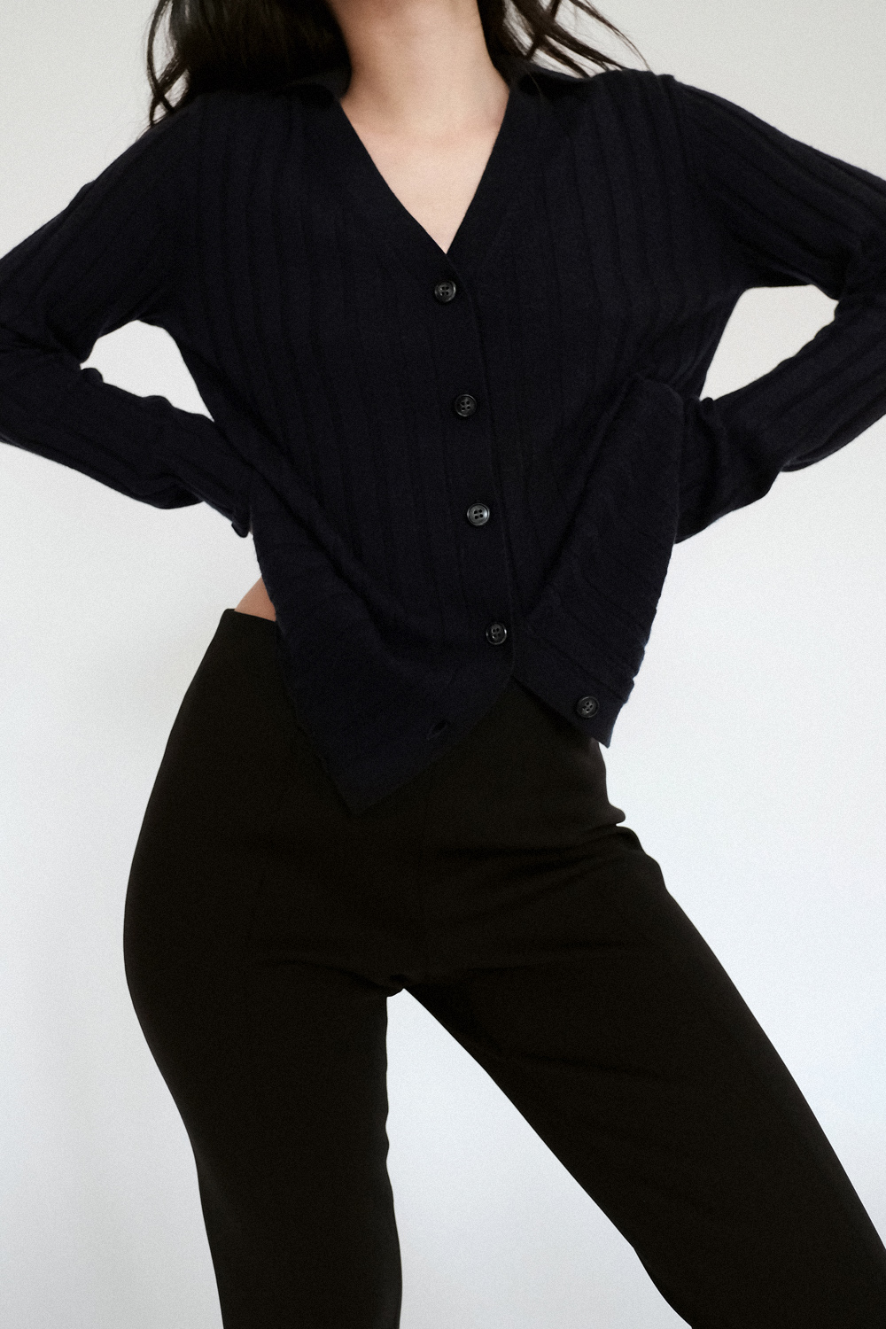 wearingNavyblue cashmere cardigan – Lisa Yang. Leggings with slit – Theory (similar). Strappy sandals – Aeyde.