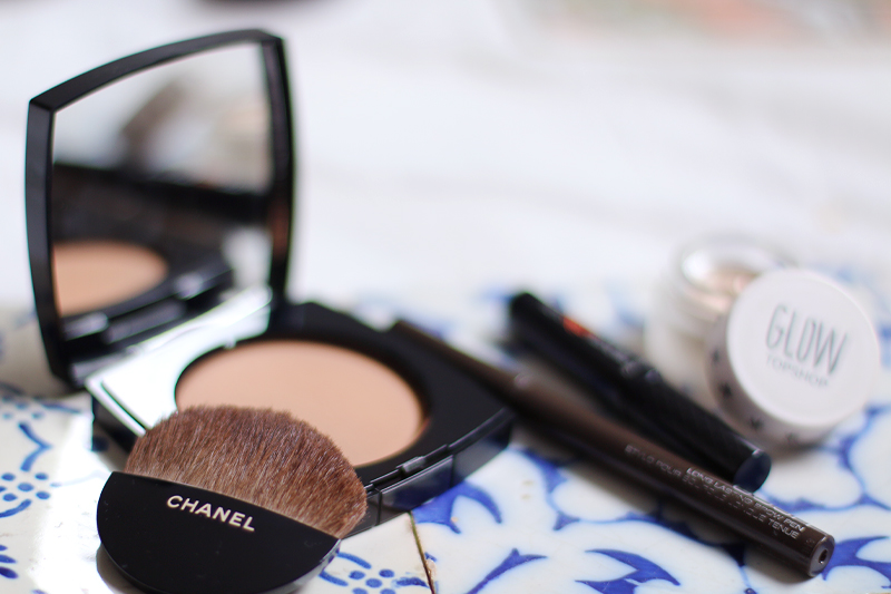 Es gab ein paar Neuzugänge in meiner Schminksammlung. Einige Produkte haben sich zu richtigen Favoriten entwickelt und deswegen möchte ich euch ein paar davon vorstellen. (1) Wer kennt das? Endlich ist die Sonne und man ist sogar ein bisschen braun geworden. Aber bei mir verblasst die Bräune im Gesicht immer viel schneller als am Körper. Damit ich wenigstens geschminkt kein „Mondgesicht“ habe, helfe ich gerne mit Bronzer nach – ihr wisst ja, wie sehr ich Bronzer liebe! Neu bei mir ist das Chanel Les Beiges Healthy Glow Sheer Powder*. Ich habe die Nr. 40 und ist damit etwas dunkler als mein eigentlicher Teint. Wie der Name schon sagt ist es ein Puder mit leichter Deckkraft (sheer finish), weshalb ich das Puder ganz einfach über das ganze Gesicht verwenden kann und somit eine natürliche Bräune ins Gesicht zaubern kann. An den Stellen, an denen ich noch gebräunter aussehen möchte oder Stellen, die ich konturieren möchte, gehe ich einfach noch mal mit dem Puder drüber. Das Puder mattiert meine T-Zone, verleiht mir aber trotzdem einen schönen Glow. Ein Luxusprodukt, von dem ich begeistert bin. (2) Letzte Woche war ich in London und ich konnte mir endlich die Beauty Produkte bei Topshop Live anschauen. Schon im Vorfeld wusste ich, welches Produkt mich besonders reizen würde: Der Glow Highlighter in „Polished“. Und er hat mich überzeugt. Dieser Creme-Highlighter verleiht einen schönen roségoldenen (!!!) Schimmer auf der Haut. Durch den warmen Unterton ist er perfekt zu einem „Bronzed Look“. Ein preisgünstigeres Dupe zu dem Chanel Puder in der Nr. 40 ist der Délice de Soleil Bronzer von Bourjois in der Nr.12. (3) Als wir letzte Woche in Hamburg unterwegs waren, habe ich es mir nicht nehmen lassen ein bisschen im Budni zu stöbern (für diejenigen, die Budni nicht kennen: Das ist ein Drogeriemarkt, den es in und um Hamburg gibt). Ich habe mich sehr gefreut als ich einen Stand der Marke GOSH entdeckt habe. Ich wollte nämlich schon immer den Longlasting Brow Pen ausprobieren! ich habe die Farbe 001 Dark Brown genommen und sie passt perfekt zu meinen Augenbrauen/meiner Haarfarbe. Wegen der feinen Filzspitze kann man sich die Augenbrauen präzise Auffüllen und sogar kleine Häarchen zeichnen. Und longlasting ist er alle mal – also perfekt für die heißen Sommertage, so dass man seine Augenbrauen nicht wegschwitzt ;) (4) Zu guter Letzt eine kleine Neuerscheinung auf dem Beauty-Markt: Der Benefit They’re Real Push-Up Liner* (Ich habe eine kleine Testgröße). Kurz gesagt ist das ein Gel-Eyeliner in Stiftform. Wenn man sich an den Auftrag gewöhnt hat, ist er echt super. Genau wie der They’re Real Mascara ist er wasserfest – also ebenso perfekt für den Sommer oder für tränende Augen. Ich trage ihn folgendermaßen auf: Ich nehme mir nicht, wie die meisten, die untere Wasserlinie als Guideline, sondern die obere. Außerdem trage ich den Lidstrich nur am äußeren Winkel auf, wie eine Verlängerung. Dadurch geht mein Lidstrich eher nach unten und sieht so meiner Meinung nach viel eher nach Wimpern aus, als wenn der Strich nach oben geht.