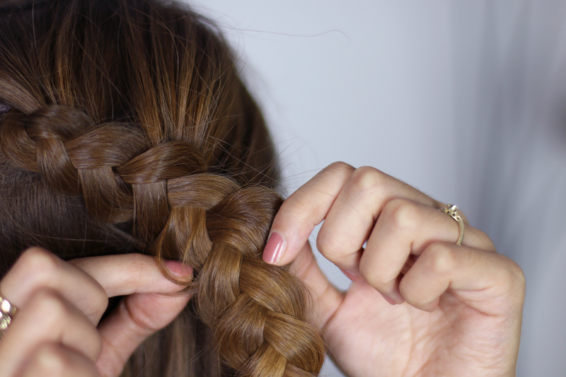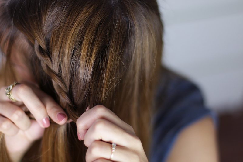 (6) Der Schritt, der meiner Meinung nach den größten Unterschied macht, ist das Auflockern des Flechtzopfes. Dabei fangt ihr unten an und zieht vorsichtig die Schlaufen etwas auseinander. So sieht der Zopf viel voller und schöner aus!