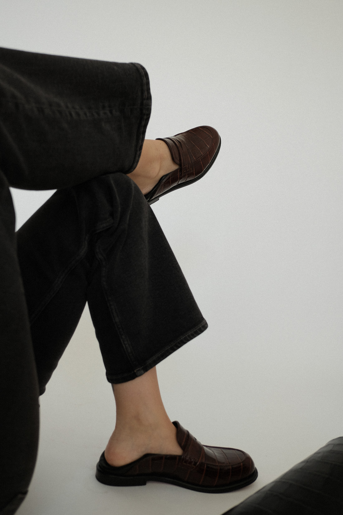 Ribbed body shirt Edited. Cropped stretch jeans Arket. White denim shirt (similar) Babaton. Croc embossed loafers Loewe. Loop bucket bag Little Liffner.