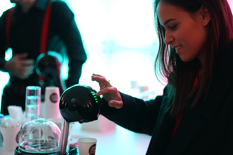 Uns hat es also sehr gefreut, von NESCAFÉ Dolce Gusto eingeladen worden zu sein, um die zwei neuen Maschinenmodelle in ihrer Design Lounge auszuprobieren – Kaffee auf Knopfdruck oder hier sogar mit einer einfachen Berührung.