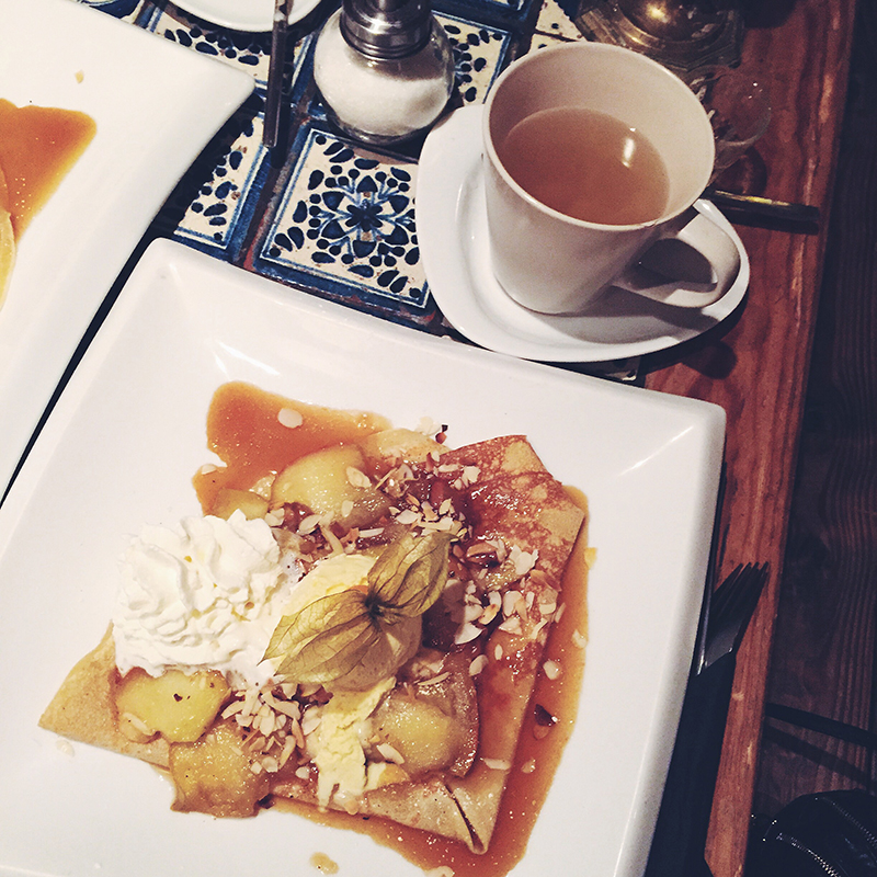 Crêperie Manouche, Grimmstr. 23, 10967 Berlin: Wenn ich mir ein Lokal in den Wedding (mein Kiez) wünschen könnte, dann wäre es die Crêperie Manouche. Hier gibt es frisch zubereitete Galettes und Crêpes, aber auch leckere Cocktails. Wenn man also abends noch etwas trinken gehen möchte, aber auch Lust auf etwas Süßes hat, ist dieses Café perfekt. Natürlich gibt es auch heiße Getränke. Der teuerste Crêpe der Karte (auch auf dem Foto, kann mich leider nicht mehr erinnern, was alles drauf ist) kostet 5€. Das meiste aber um die 3€. Besonders gut gefällt mir auch die Einrichtung (#ilovetiles).