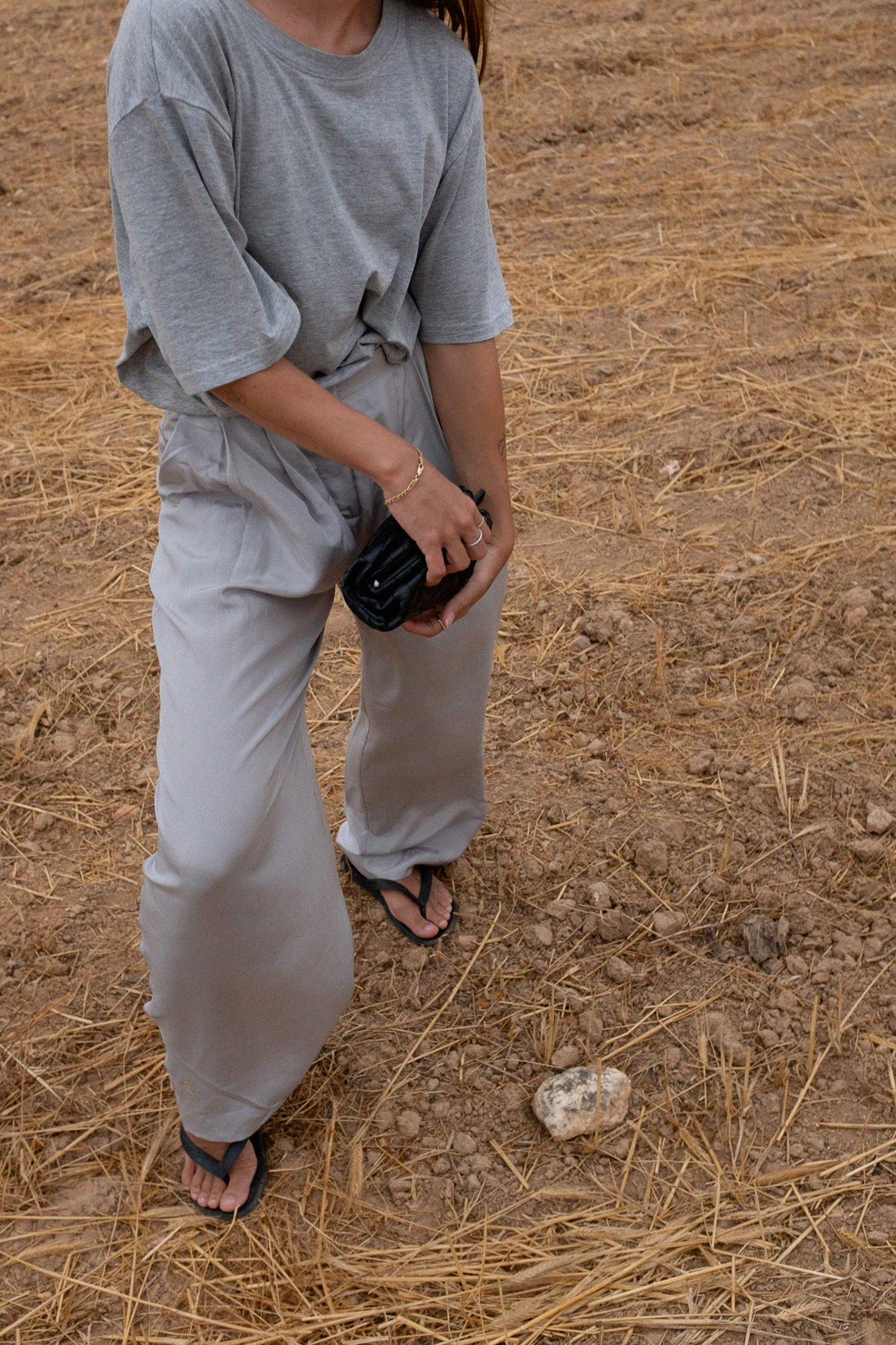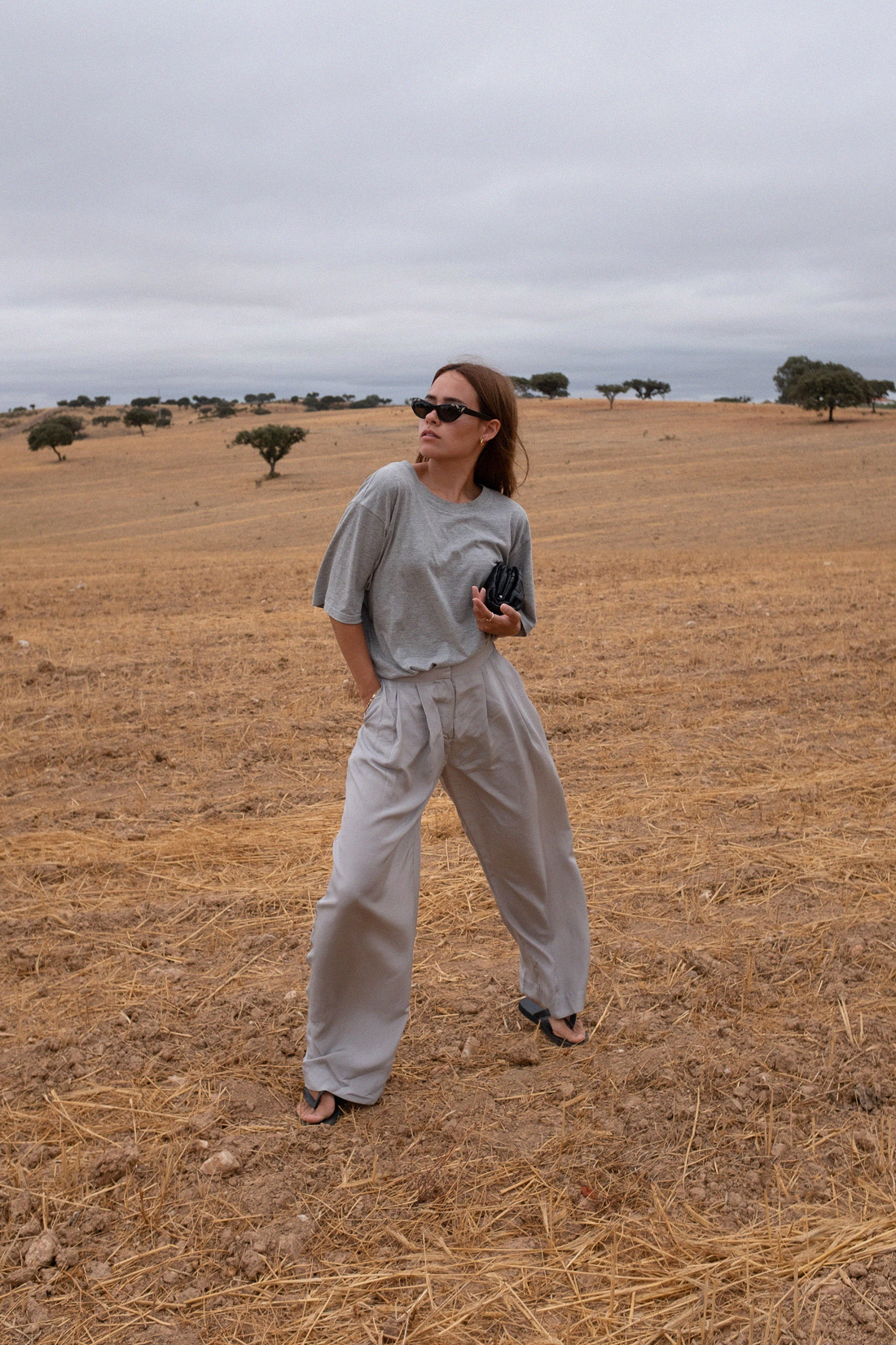 Während Nisi euch bereits zwei Looks mit der Farbe Pink gezeigt hat, gibt es von mir ein Total-Look in Grau, um so auch wieder die Farb-Waage ins Gleichgewicht zu bringen. Dieser Look aus dem Urlaub entstand ganz zufällig, als ich gegen Abend mein sommerliches Racerbacktop gegen etwas bedeckteres und weites ausgetauscht habe. Ich griff zu meinem momentanen Go-To-Shirt – ein weites graues T-Shirt aus der Männerabteilung von Weekday – und was soll ich sagen I was totally feeling it. Alles in Grau, alles recht weit geschnitten, demnach super bequem, gerade auch wegen den Flip-Flops, mit den schwarzen Accessoires trotzdem irgendwie noch edgy. Und das hat mir mal wieder gezeigt, ein Look in komplett einer Farbe (aber Schwarz mal ausgenommen, das wäre zu einfach) sieht direkt modisch und ausgefallen aus, egal wie schlicht das Outfit letztendlich ist.