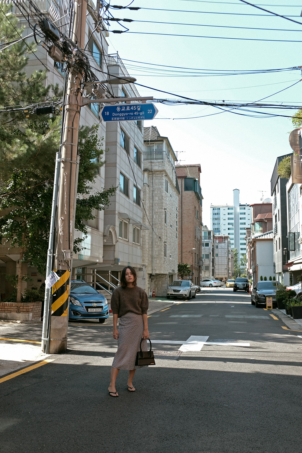 In Wahrheit sind die Fotos nicht in Gangnam, sondern in einem anderen Stadtteil in Seoul entstanden – dem Titel konnte ich trotzdem nicht widerstehen. Ebenso konnte ich mir nicht entgehen lassen, das warme und sommerliche Wetter auszunutzen, um das letzte mal Flip Flops, offene Schuhe und Röcke zu tragen. In Deutschland würde ich den Look wohl eher mit Stumpfhose, Slouchy Boots – ein tolles paar Stiefel hab es in den letzten Sunday’s Cravings – und einem Mantel kombinieren.