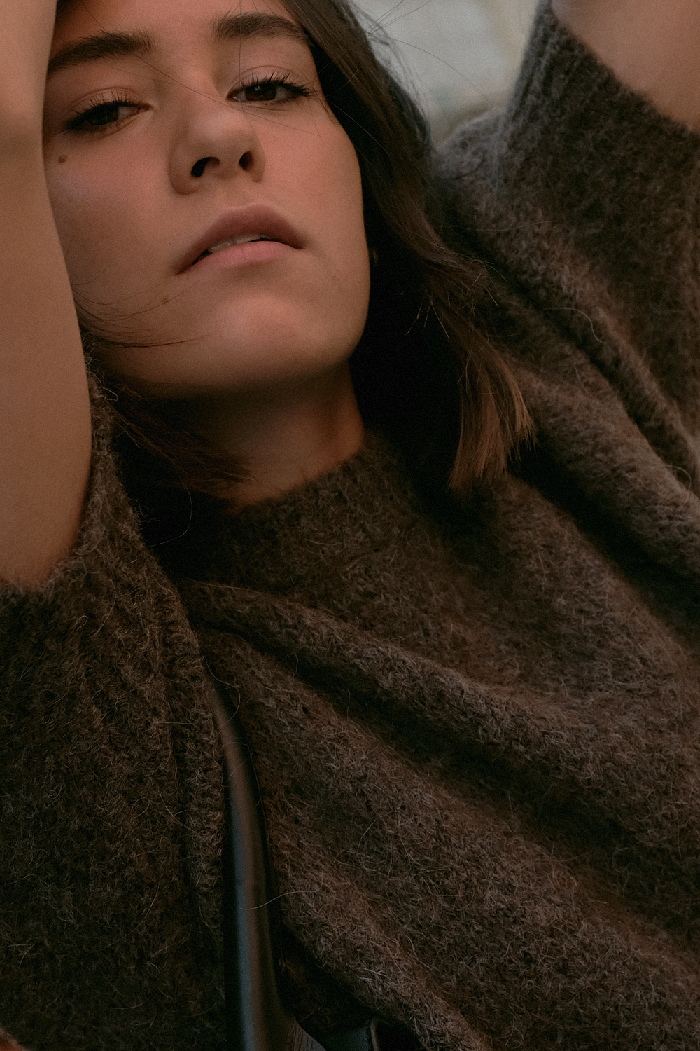 Alpaca wool sweater Edited the label. Gingham skirt & Other Stories. Heeled Flip Flops Totême (similar). „Le Grand Chiquito“ bag Jacquemus.