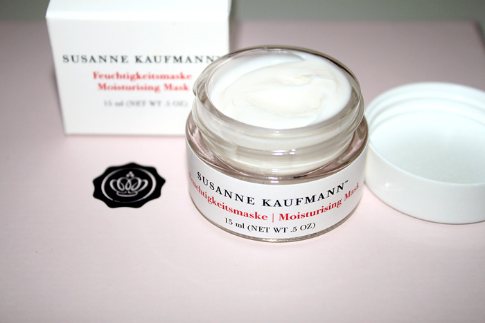 (4) Eine Feuchtigkeitmaske von Susanne Kaufmann. Da man im Winter oft mal unter trockener Haut leidet, kommt er wahrscheinlich ganz gelegen. Aber ausprobiert haben wir die Maske noch nicht. Ich habe allerdings eine kleine Menge auf dem Handrücken verrieben. Schön, ich frage mich, ob man das nicht viel lieber als Feuchtigkeitscreme benutzen könnte? ;D