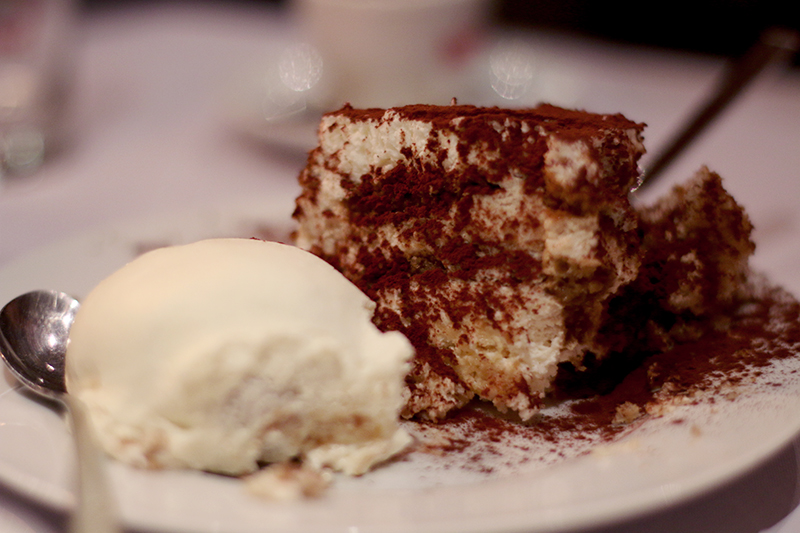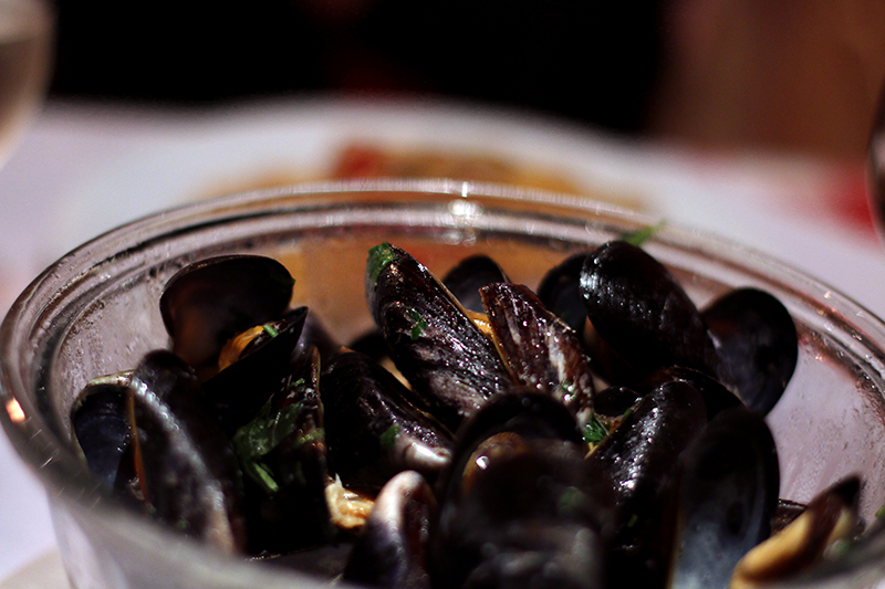 Endlich ist Muschel-Saison (alle Monate mit -er), weshalb ich mir einen Topf voll Miesmuscheln in Weißweinsoße (Cozze al vino bianco) nicht entgehen lassen durfte! Aber auch die Spaghetti Vongole (Spaghetti mit Venusmuscheln und Tomaten) meiner Freundin schmeckte ebenso gut, wie sie auf ihrem Teller aussahen. Der krönende Abschluss bestand natürlich aus einem großen Stück Tirami Sú, in dem ich mich hätte reinsetzen können – so cremig und fluffig! Ebenso ausprobiert und zu empfehlen sind die Tagliatelle con Salmone e Rucula (Bandnudeln mit Lachs in Hummersauce und Rucula), Schiena d’agnello alle Castagne (Lammrücken mit Maronen in Rotweinsoße) und das Carpaccio.