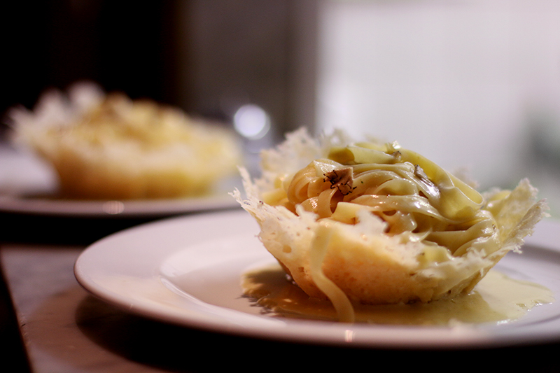 Tagliatelle Tartufo – Bandnudeln mit Trüffel im Käsenest