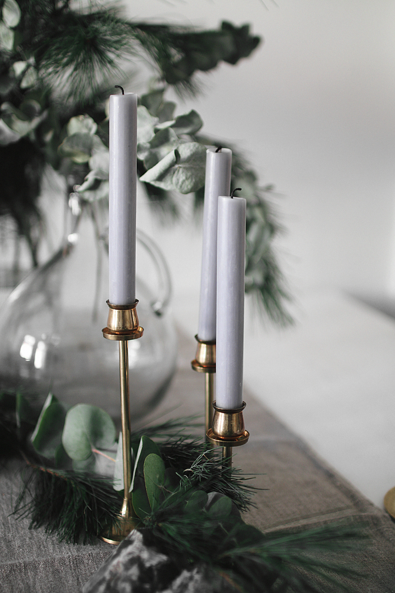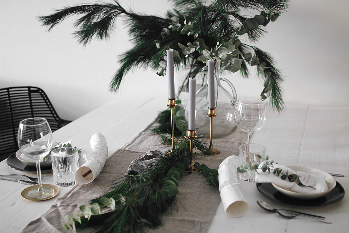 Das ist so schön! Ich gehe heute auch auf Grün in der Tischdeko, aber das mit den Nadelbaumzweigen und Eukalyptuszweigen ist eine tolle Idee, vielleicht baue ich das ein bisschen mit ein. Echt sehr schön gemacht!