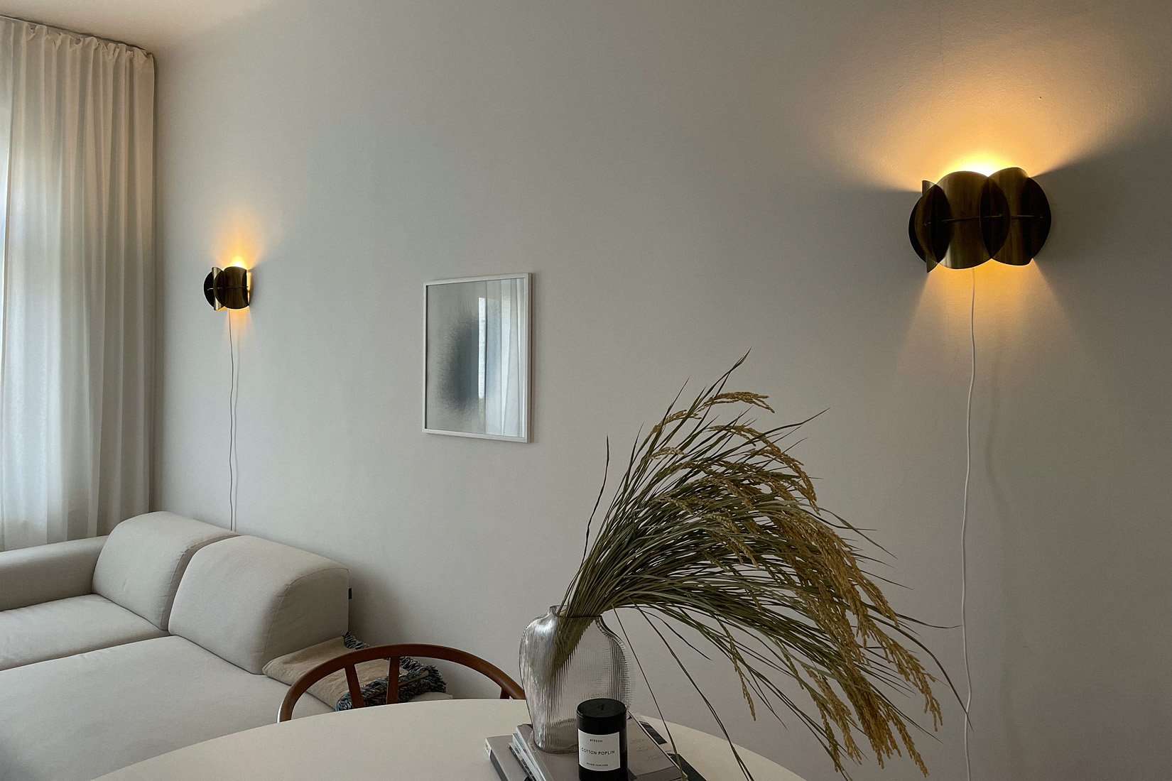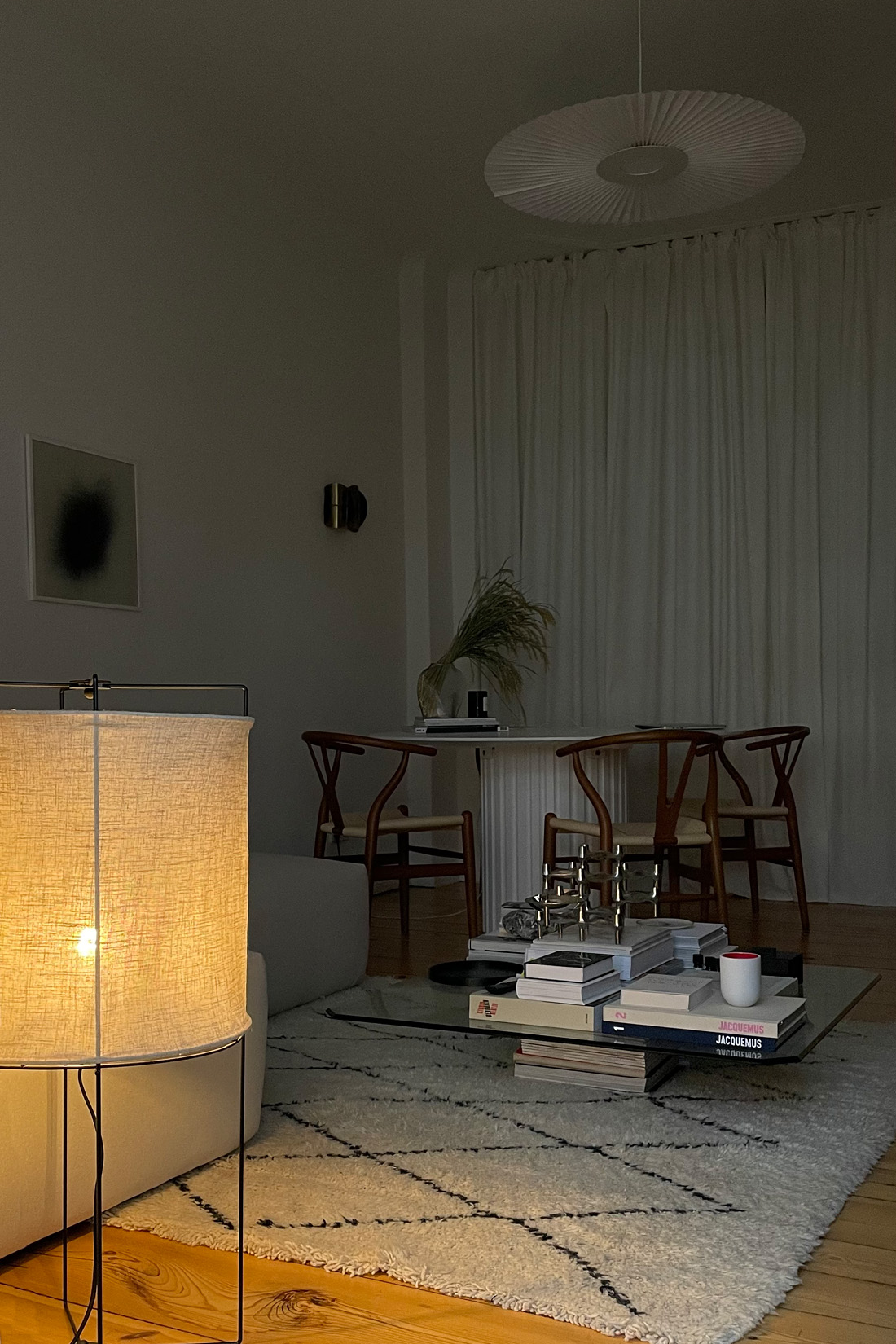 in this photo,Carmen 90cm‘ pendant lampHarto. Brass wall lampDutchbone. Floor lamp with linen shadeJotex.