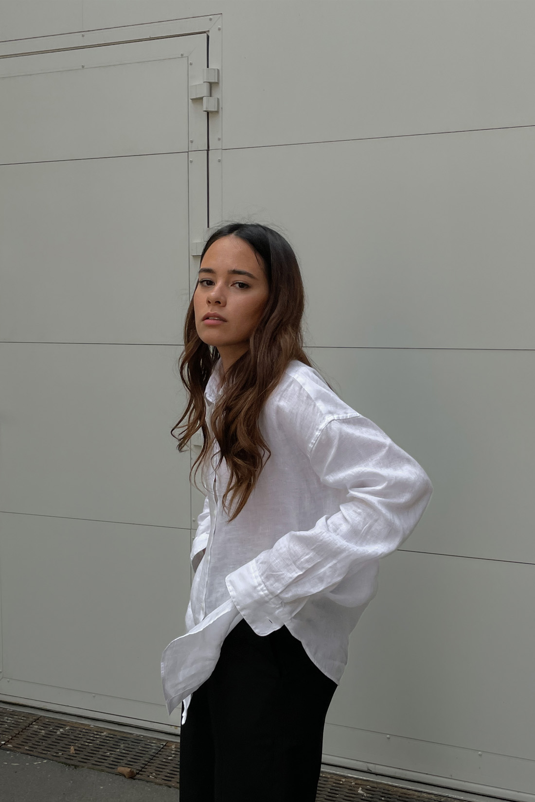 Eine schwarze Anzugshose und ein weißes Hemd. Das klingt ganz nach einer klassischen Kombination, auf die ich in jeder Jahreszeit gerne zurückgreife. Aus Leinen und mit einem lockeren Fit wird das Outfit zu einem bequemen Go-To-Outfit für den Sommer. Super bequem aber trotzdem schick! Sowohl die Hose als auch das Hemd von Uniqlo sind jeweils schon locker geschnitten. Lediglich beim Hemd habe ich eine Größe größer genommen, um den Oversized-Look noch zu verstärken.