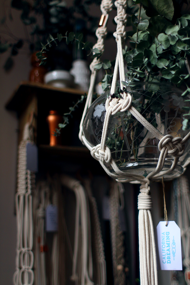 Wir haben vorab eine Künstlerin besucht, die beim Berliner Flower Market vertreten sein wird: Dörte von California Dreaming. Ihr Atelier und Store befindet sich in der Briesestraße 9 in Neukölln – im Vintageladen Rag And Bone Man ist neben California Dreaming auch das Flower Studio Poems & Posies by Wildflowers Berlin und ein Café Zuhause. Ihre California-Dreaming-Makramees fertigt Dörte in liebevoller Handarbeit mit Knüpftechnik an. Dörte sagt selbst, dass die Arbeit an einem Makramee entspannend ist und schon fast therapeutisch wirkt. Das Ergebnis? Wunderschöne Wanddeko, die Blumen, Pflanzen und Kakteen ins Rampenlicht rückt und eine herrlich entspannte Atmosphäre zaubert. Jeder noch so cleanen Einrichtung kann so etwas mehr Persönlichkeit verleiht werden. Und Instagram- und Pinteresttauglich ist die Wanddeko auch! ;)