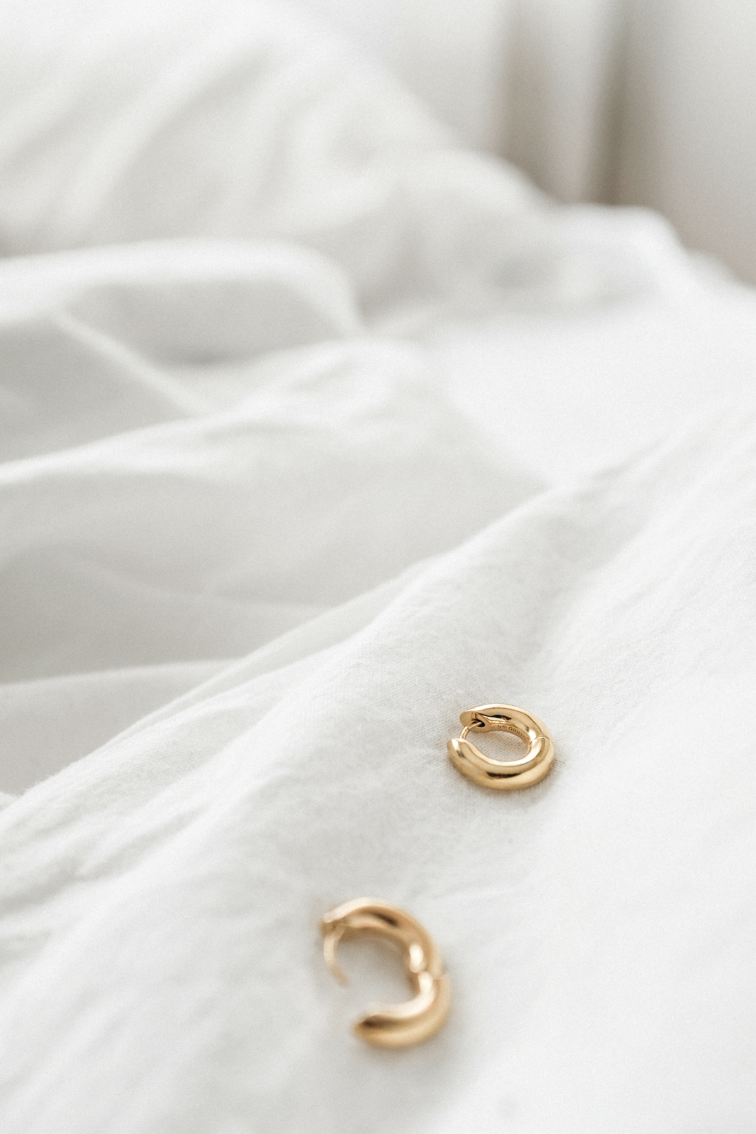 Die einzigen Hoops die ich brauche! Ein Paar große, goldene Hoops und ein Paar kleinere. Und das ganze nochmal in Silber. Mit meinen zwei Ohrlöchern auf jeder Seite trage ich sie dann entweder im Set in Gold oder Silber oder gemischt in Bicolor. Sogenannte Hollow-Hoops sind meine Favoriten, da sie – wie der Name schon sagt – hohl sind und dadurch ultra leicht und bequem sind!
