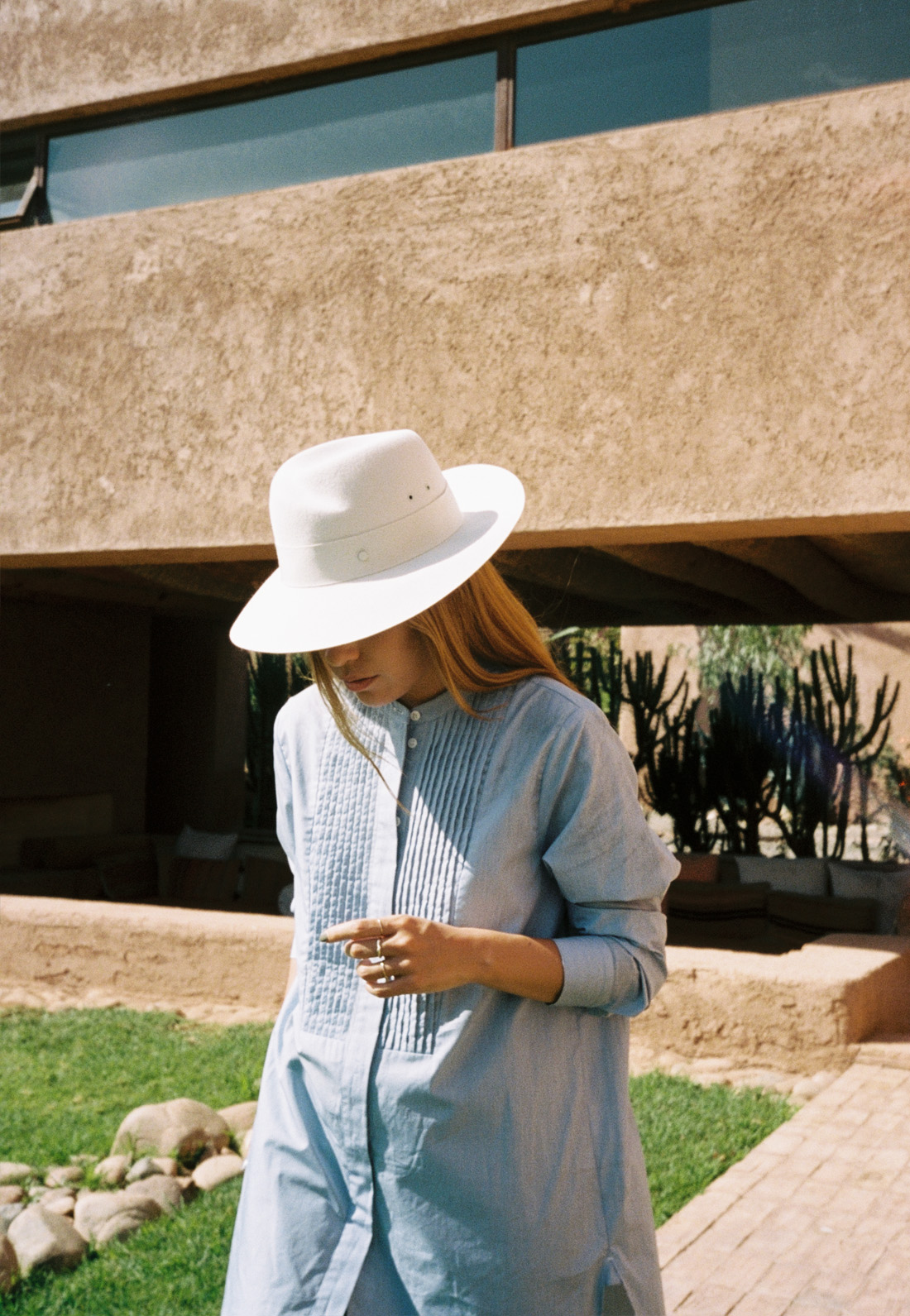 in these photosupper photo: White hat – Maison Michel. Long shirt – Seidensticker.