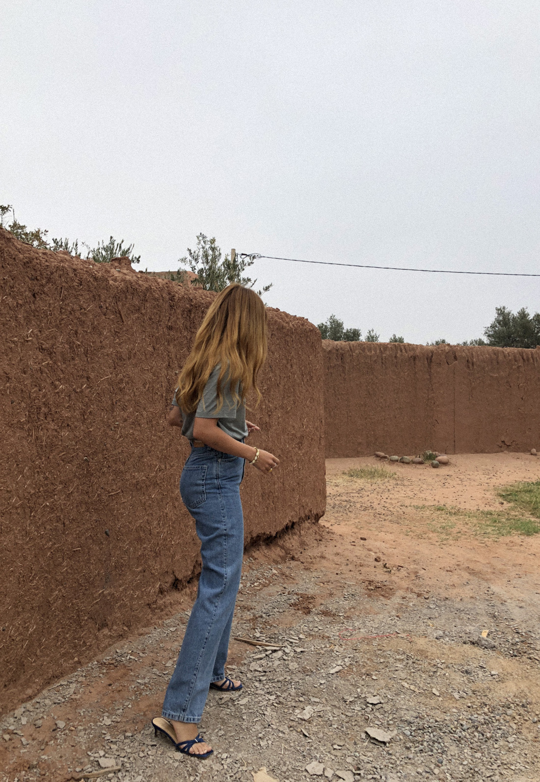 wearingKhaki silk shirt – H&M. Wide ‚Voyage‘ jeans – Weekday. Mules – By Far.