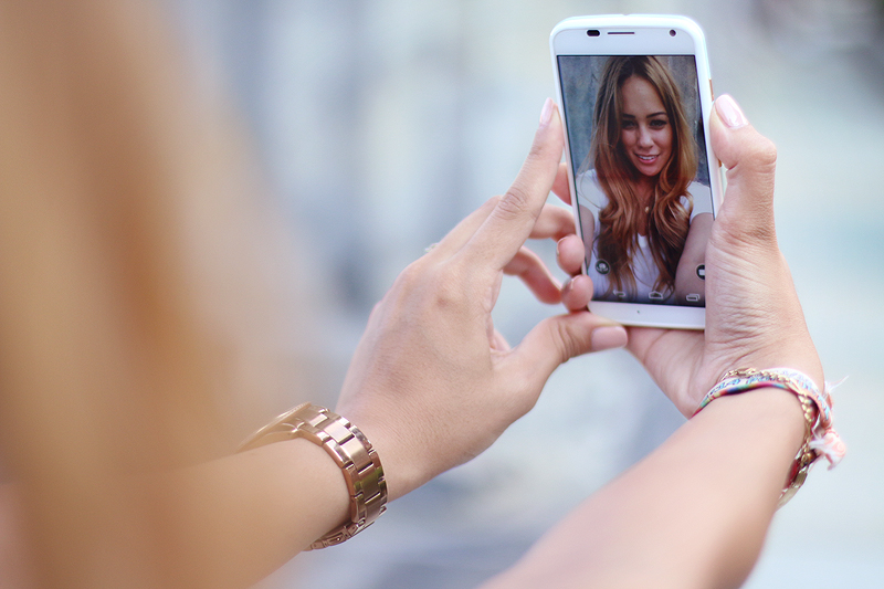 Vor zwei Wochen haben wir bereits über den Moto Maker von Motorola berichtet und nun ist auch unser personalisiertes Moto X da! Wir haben uns letztendlich gegen das Holz-Design und für das Mintgrün entschieden (und es passt ja so schön zu unserem Blognamen). Goldene Akzente und eine weiße Vorderseite. Als Signatur wählten wir „Fall in love with life.„. Für etwas, was man täglich lesen würde, fanden wir so ein „Lebensmotto“ am schönsten. Meine Lieblings-Features sind eindeutig die Front-Kamera und die Sprachsteuerung. Auch wenn 2 Megapixel erstmal recht wenig klingt, die Front-Kamera eignet sich meiner Meinung nach dennoch super für Selfies ;) Und nun zu der Sprachsteuerung: Durch den Auslösesatz „Ok Google Now“ kann man dem Moto X nahe zu jeden Befehl geben, den einem einfällt. Und das macht mehr Spaß, als ich gedacht habe. Vor allem wenn man einfach nur schnell nach etwas googlen möchte. Man muss zuvor seine eigene Stimme aufnehmen, damit das Smartphone seinen Besitzer erkennt und die Befehle nicht von irgendjemand ausgelöst werden, der gerade zufällig an einem vorbeiläuft und auch „Ok Google Now“ sagt. Dadurch dass die Stimmen von Nisi und mir sind so ähnlich, funktioniert die Steuerung bei uns beiden – witzig!. Wer mehr über das Smartphones erfahren möchte, findet hier unten auf dieser Seite alle Details im Überblick. Das Design finde ich super schön und das Personalisieren ist ein toller Bonus, den nicht jeder zu bieten hat. Cool wäre aber auch, wenn man sich im Moto Maker schon ein paar Apps im Vorfeld aussuchen könnte. Aber nun gut, mich hat es überzeugt. Trotz dass ich mich als eingefleischter iPhone-Benutzer erst noch an Android gewöhnen muss – das nehme ich in Kauf ;)