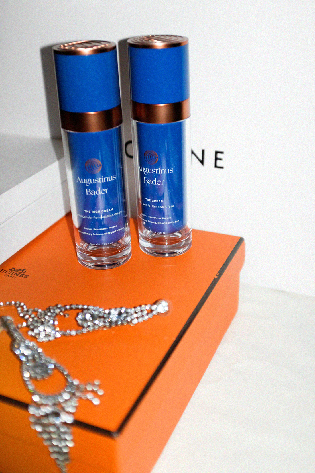 in photo on the rightOmbre première top coat in ,317 Carte Blanche‘ – Chanel. Rouge coco gloss in ,814 Crytal Clear‘ – Chanel.in photo underneathPPC Cellular Renewal The Cream – Augustinus Bader. PPC Cellular Renewal The Rich Cream – Augustinus Bader.