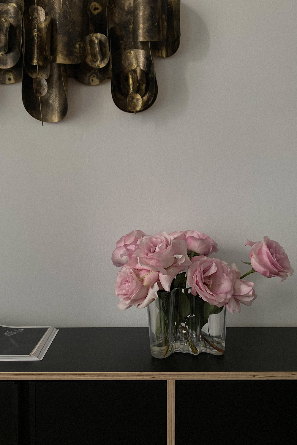 in this photoAlvar Aalto Vase – Iittala. Sideboard – Tylko. Metal Sculpture – Curtis Jere.