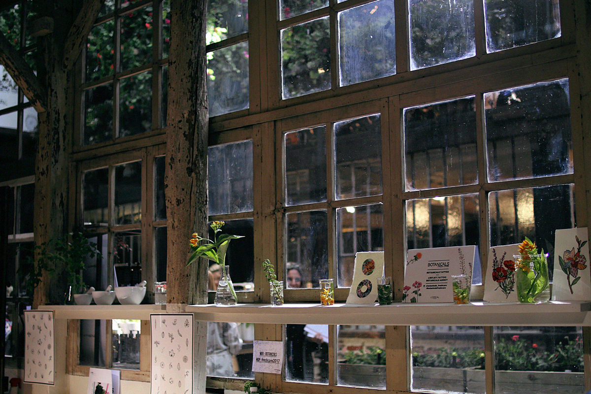 Alongside the product presentation there was an Urban Gardening masterclass by plant guru Darryl Cheng (@houseplantjournal) and also a crowdfunding competition featuring 3 „green“ start-ups who all received a generous prize money from L’Oréal Paris. Also you could make flower crowns (bloggers are totally pros in that now) or get a botanical tattoo by Briana Bray (@anybarbari) or from quite famous Rita (@rit.kit.tattoo). Colored tattoos usually aren’t my thing but those definitely looked great!
