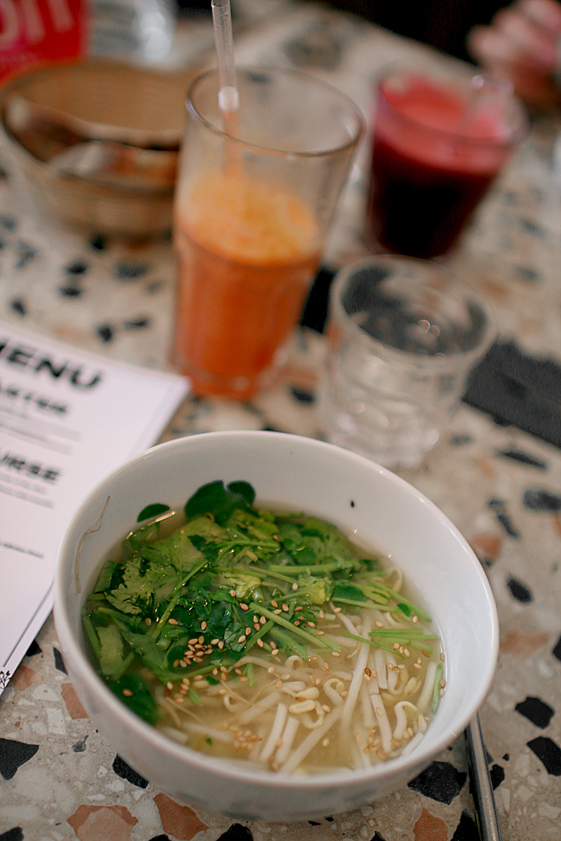 healthy lunchat Nanashi. A Japanese restaurant in 57 Rue Charlot. We had Miso soup, Edamame and a Bento dish or Sashimi salad.