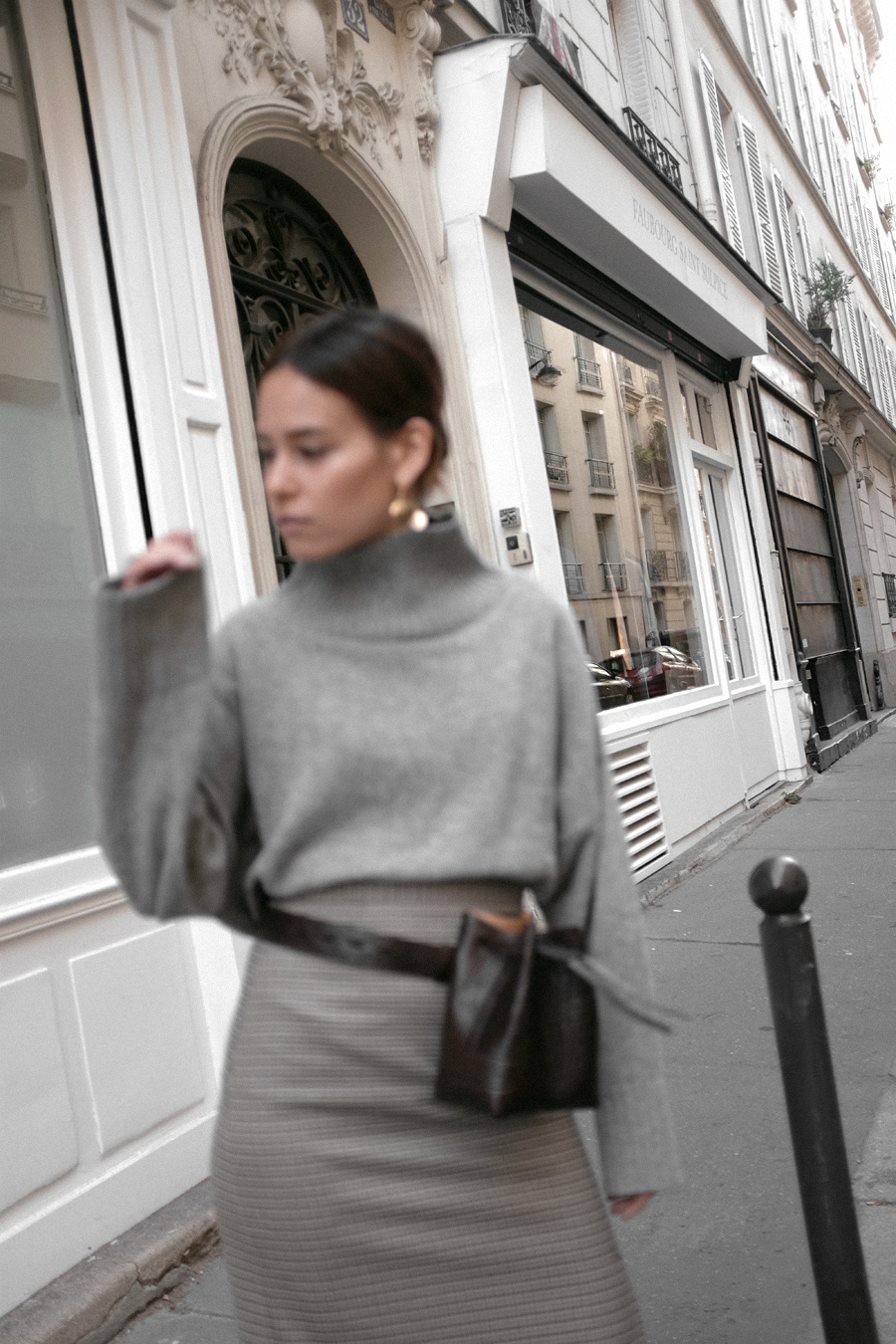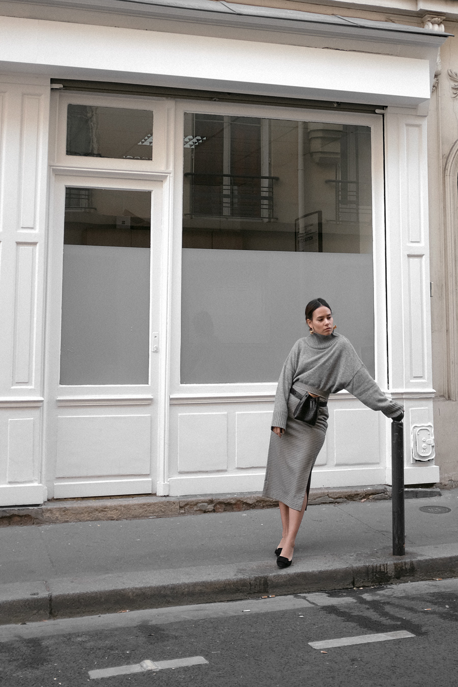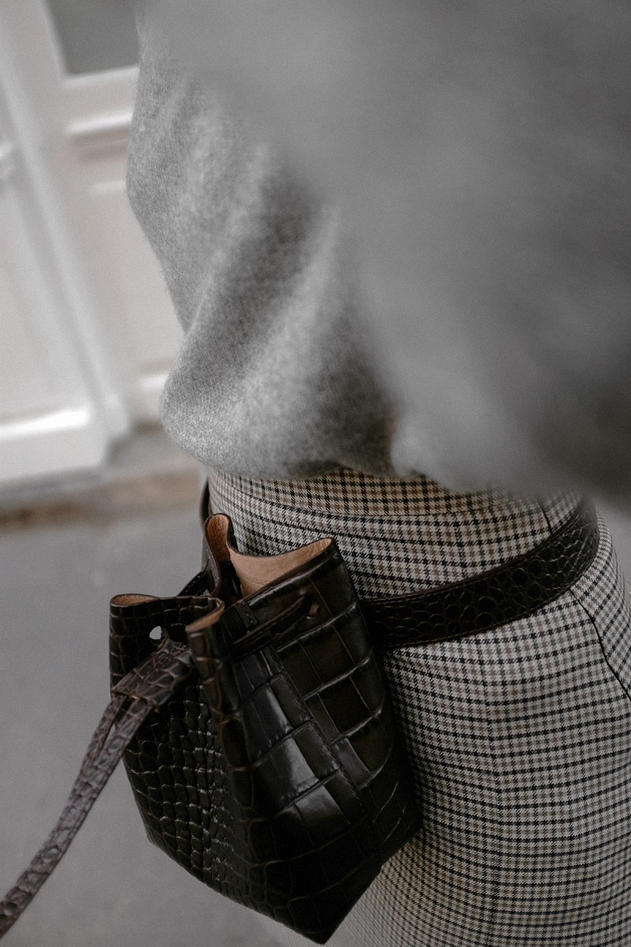 This look is combining three of my favorite things this season: checked pattern, the belt bag and – of course – the knitted turtleneck sweater. For colder days simply pair this outfit with nylon tights and heeled ankle boots – as seen in my Sunday’s Cravings feature.
